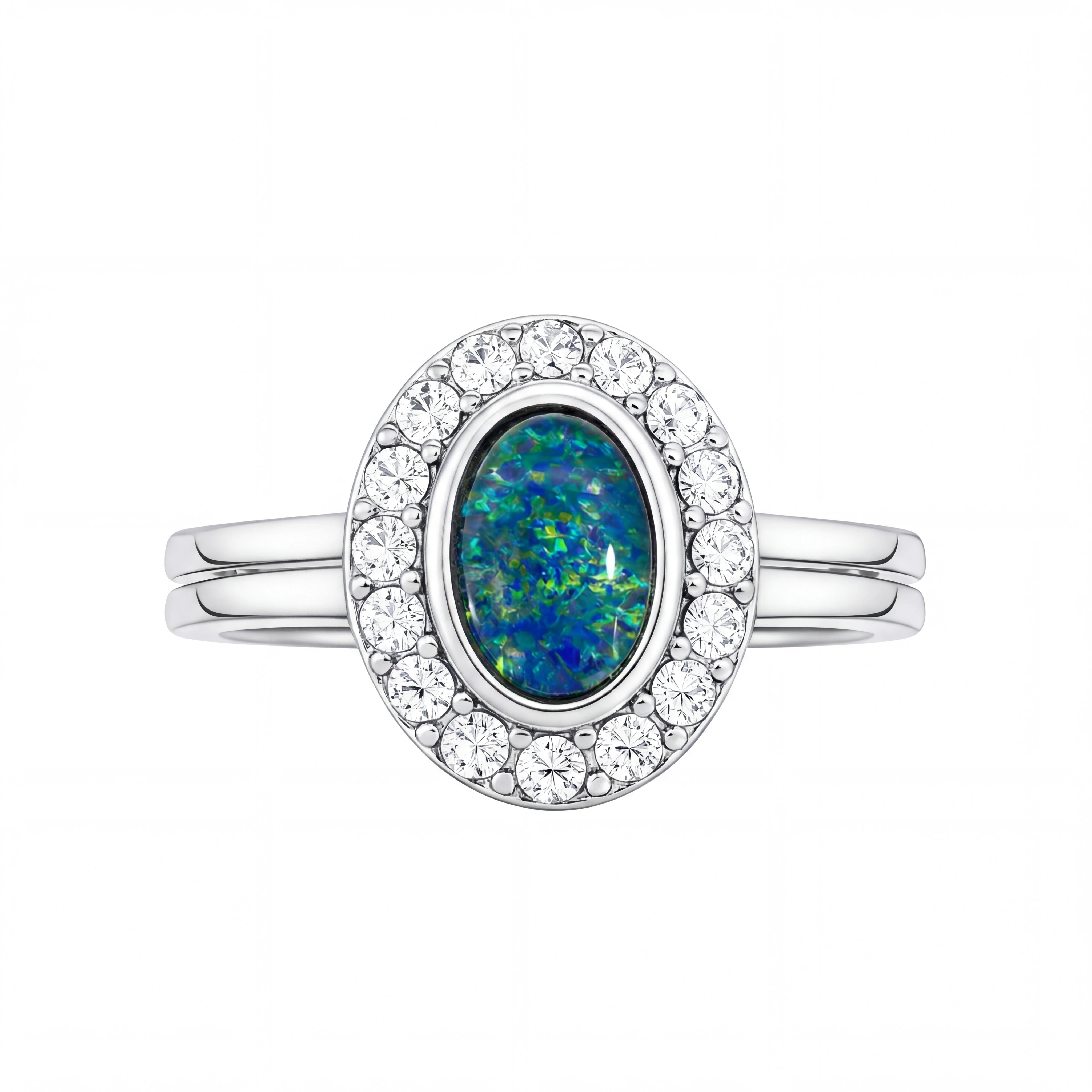 Home Triplet Opal Ring in Stainless Steel - Green and Blue