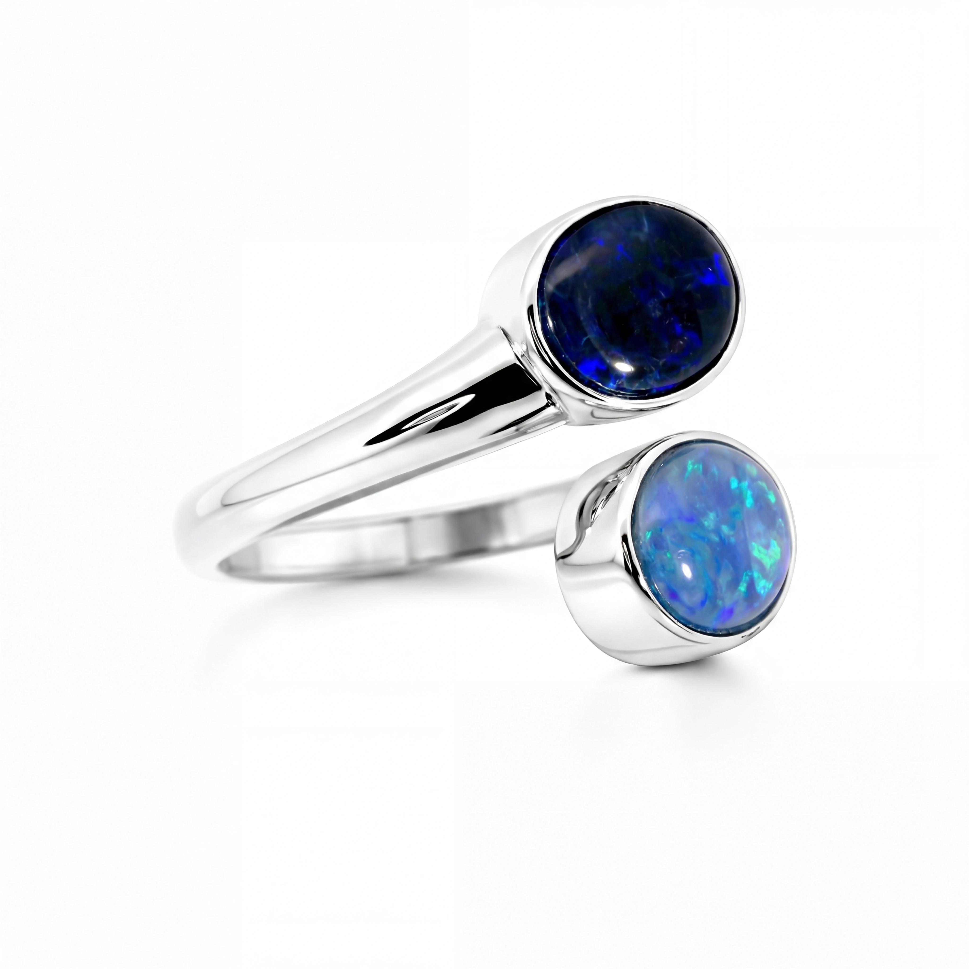 Black Opal Ring in 925 Sterling Silver - Green-Blue
