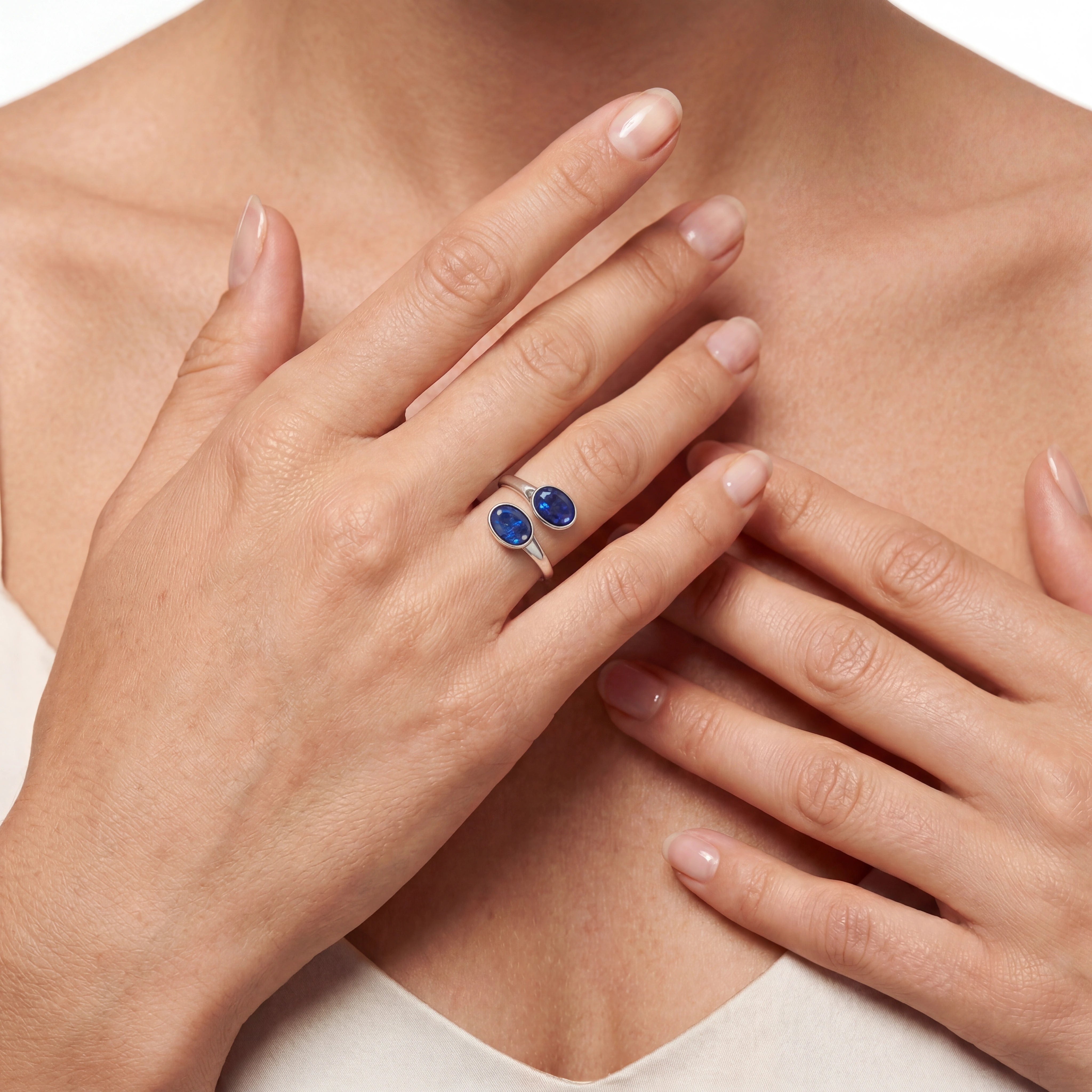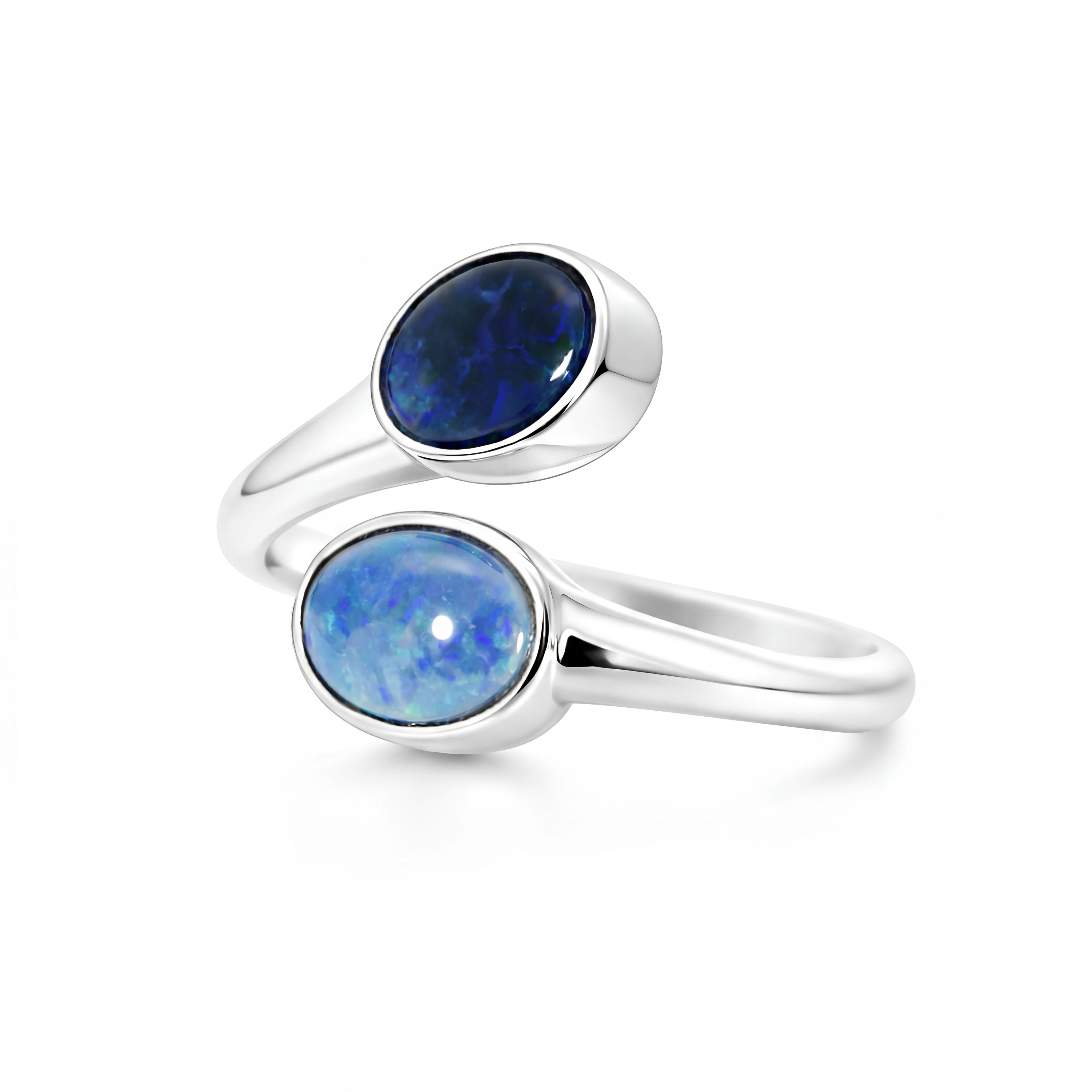Home Black Opal Ring In 925 Sterling Silver - Green-Blue