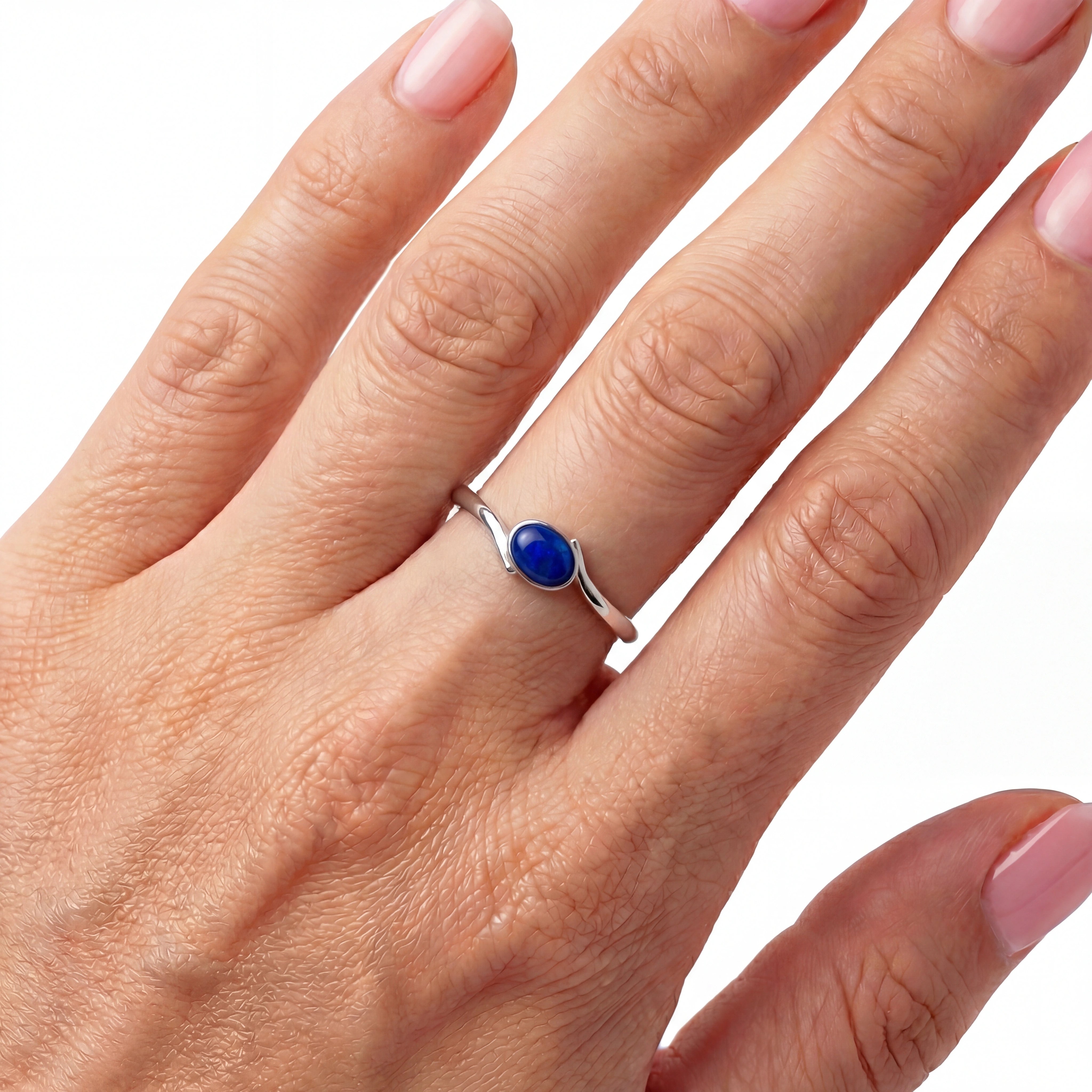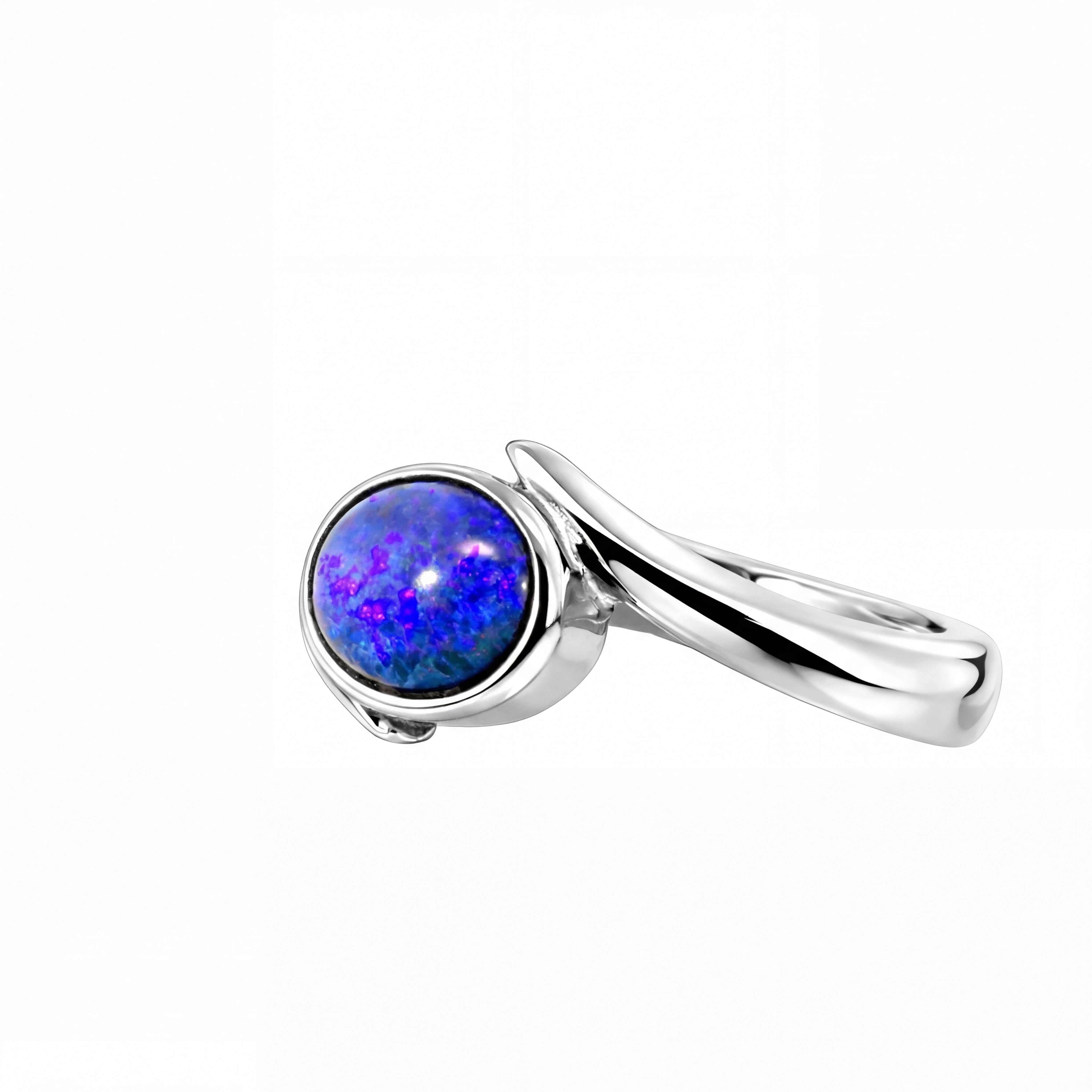 Black Opal Ring In Stainless Steel - Green and Blue