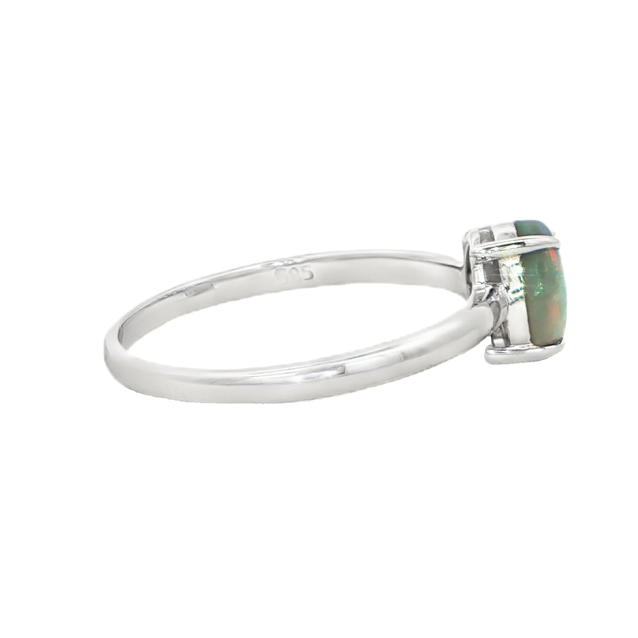 Black Opal Ring in 14K White Gold - Multicolour