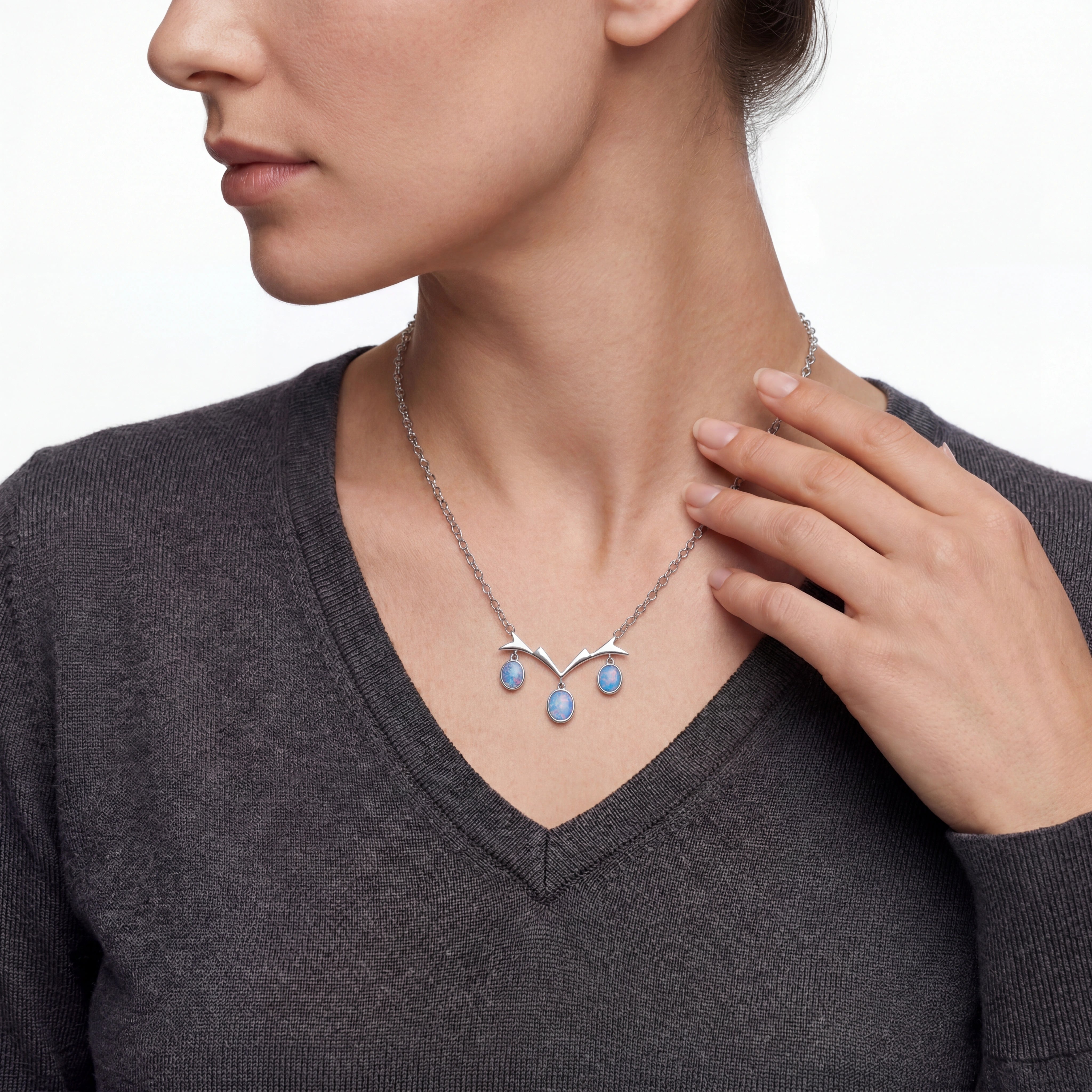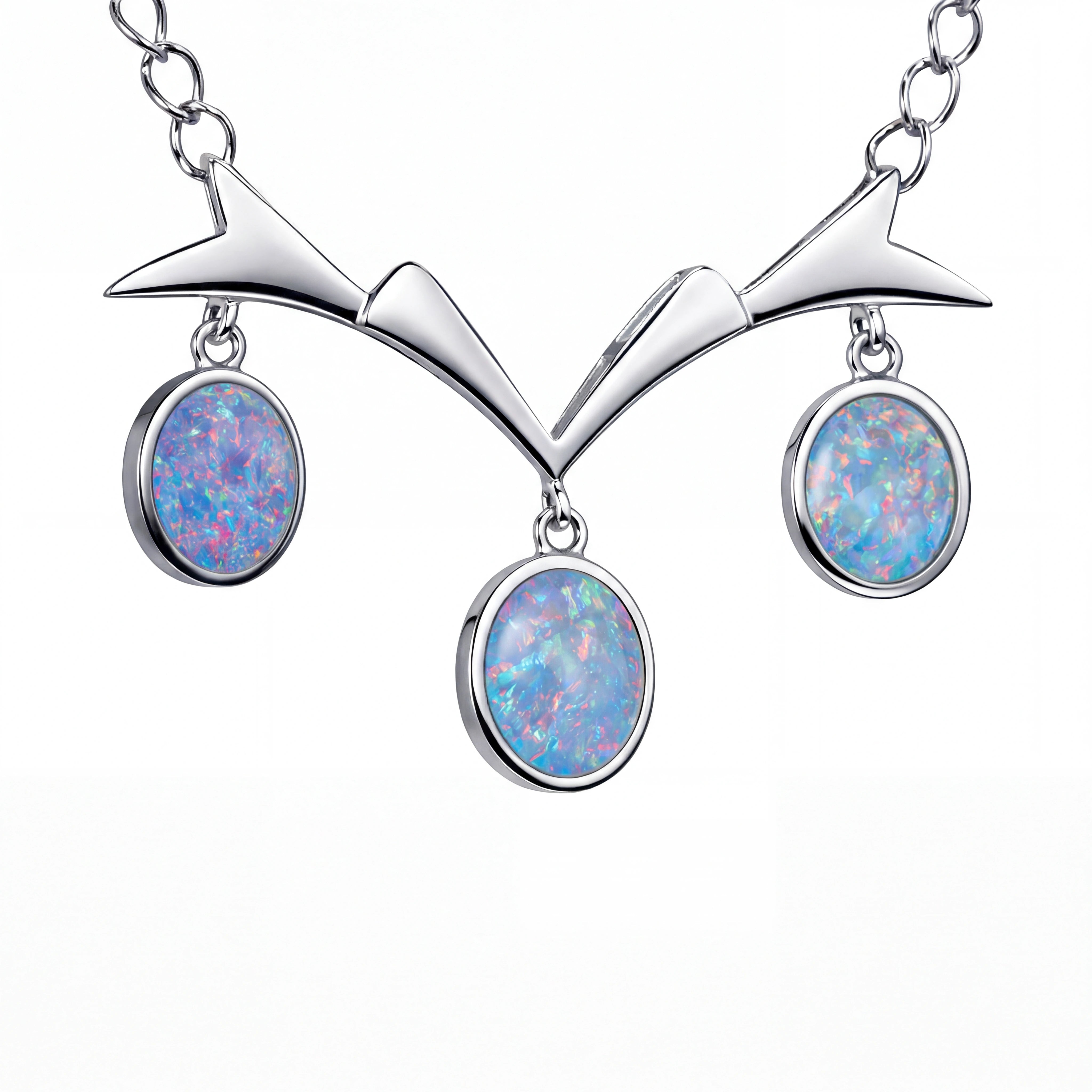 Doublet Opal Necklace in 925 Sterling Silver - Multicolour