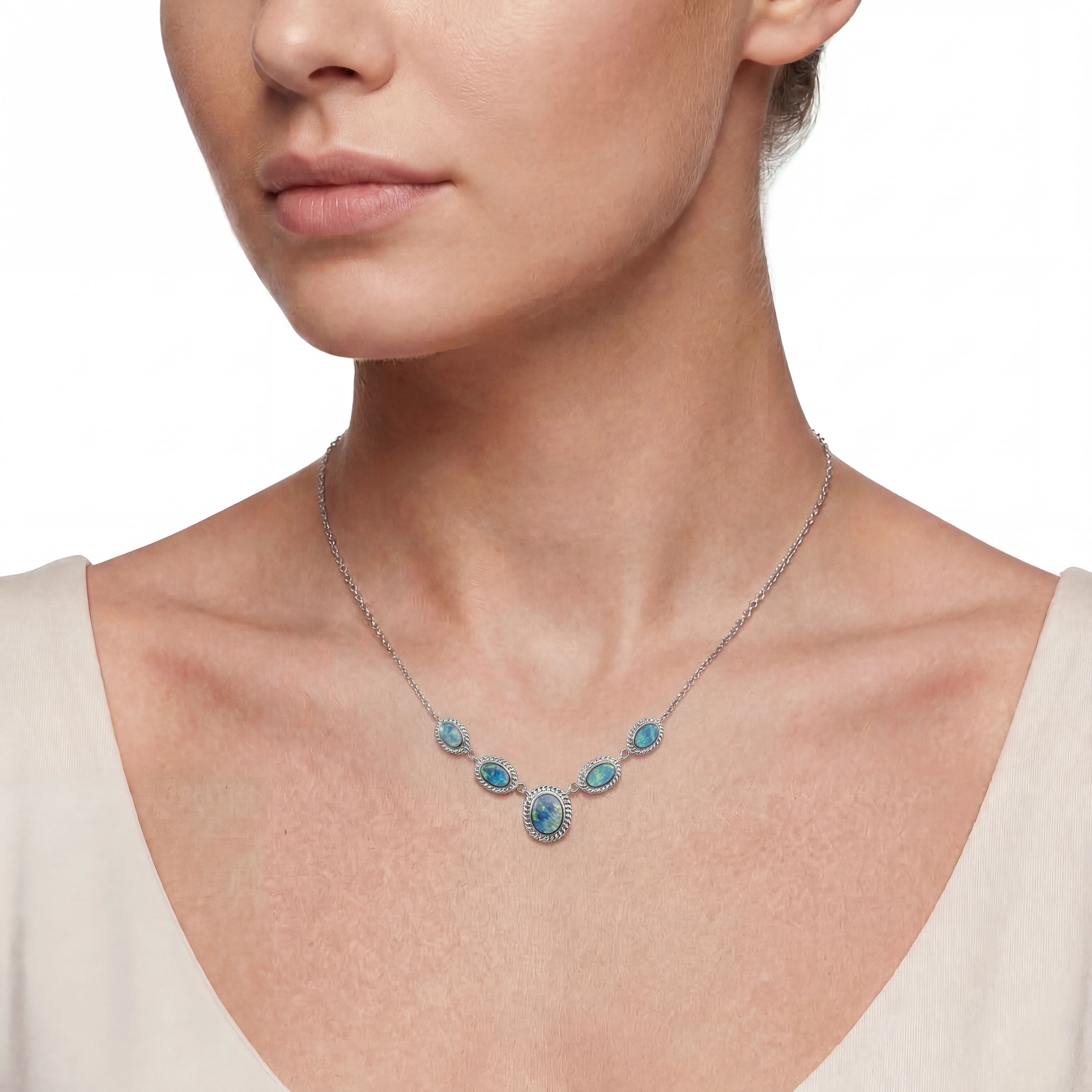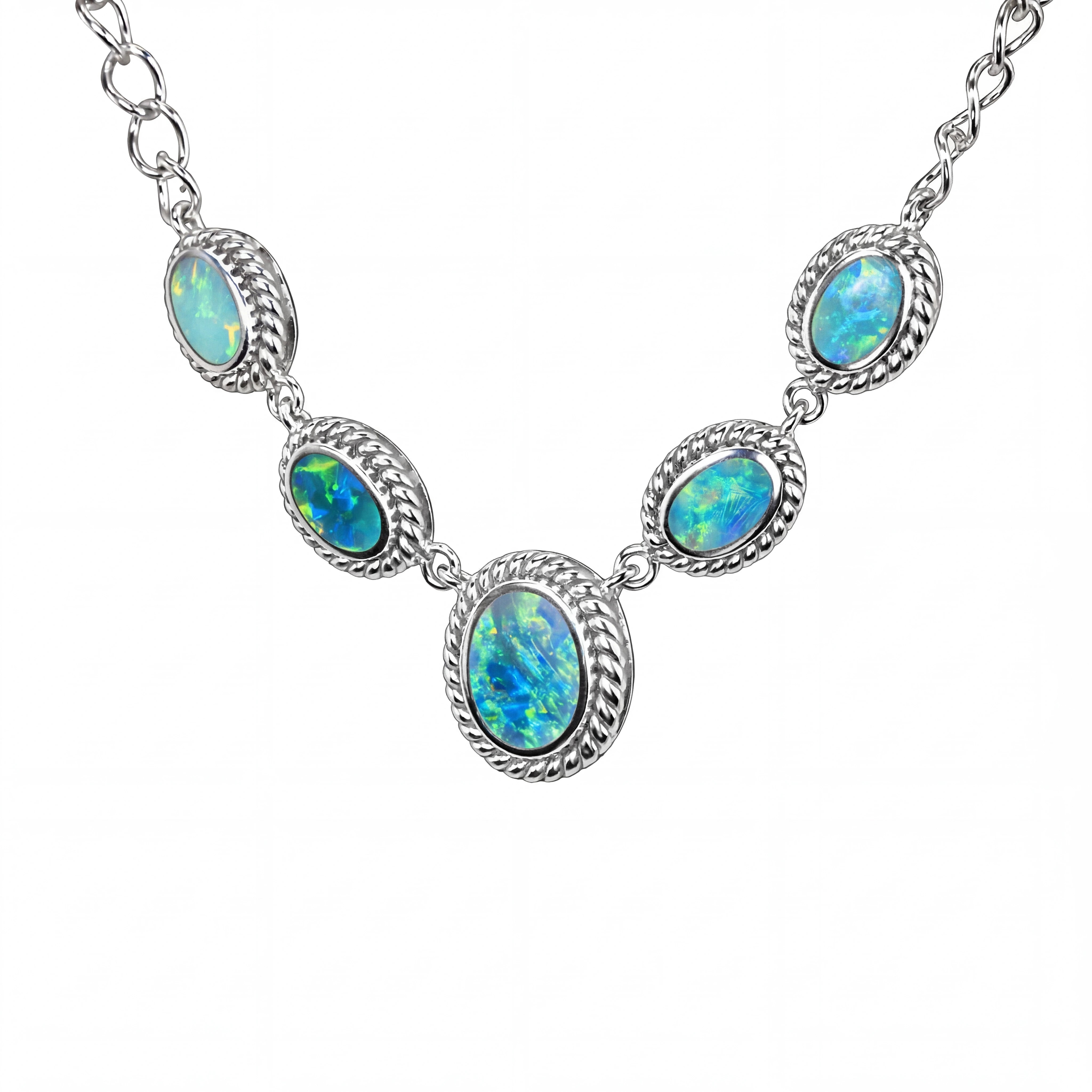 Home Doublet Opal Necklace in 925 Sterling Silver - Green-Blue