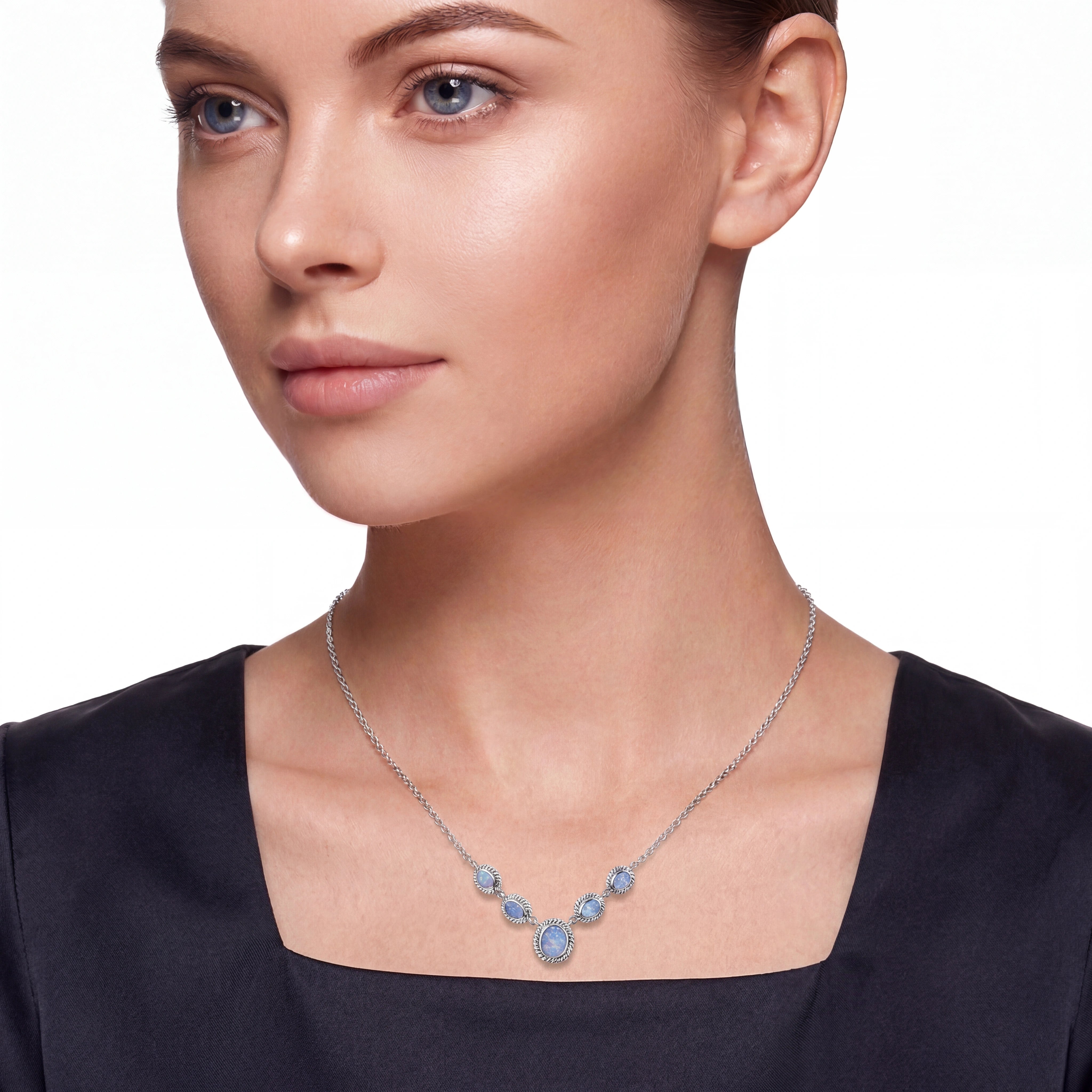 Home Doublet Opal Necklace in 925 Sterling Silver - Green-Blue