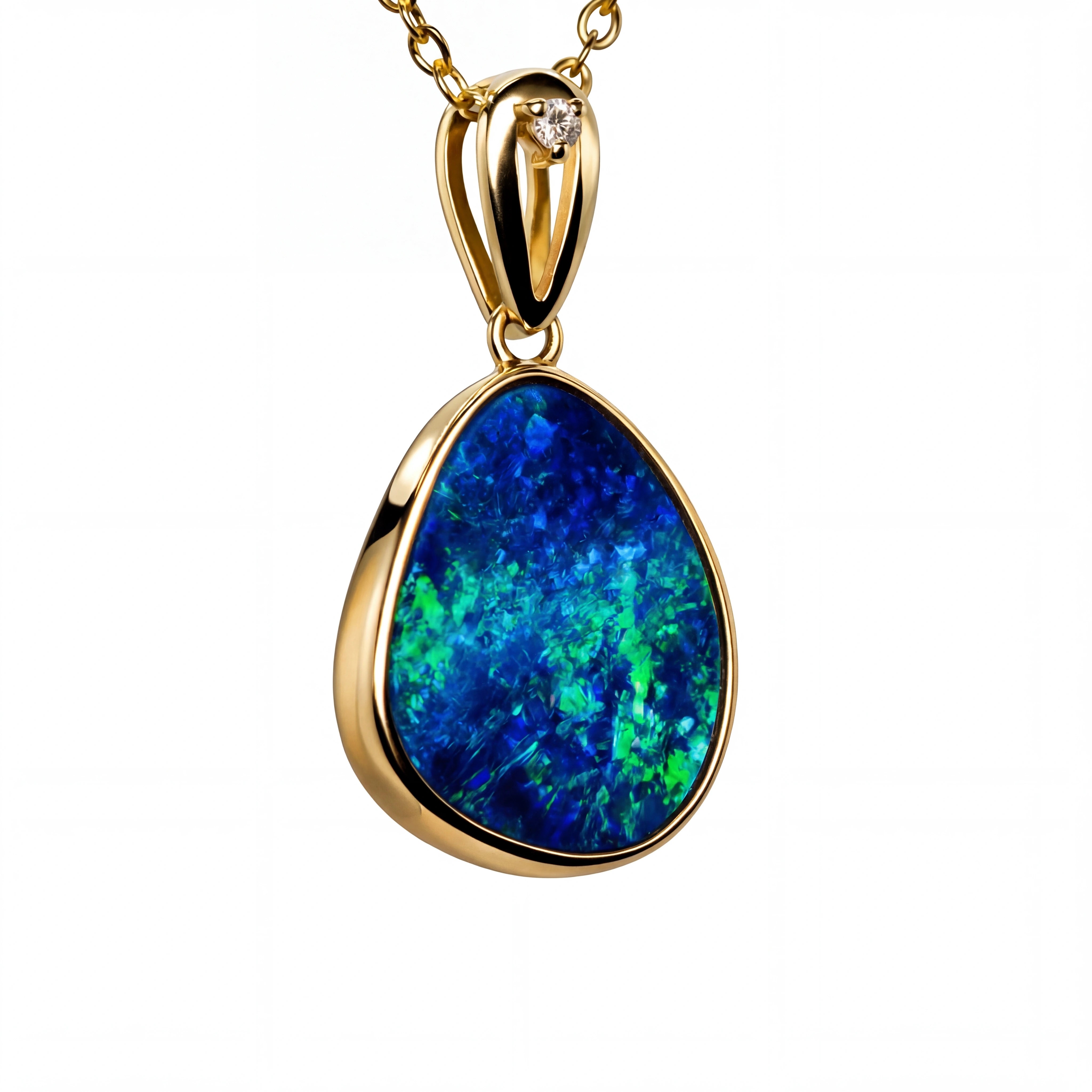 Doublet Opal Pendant in 14K Yellow Gold - Green-Blue