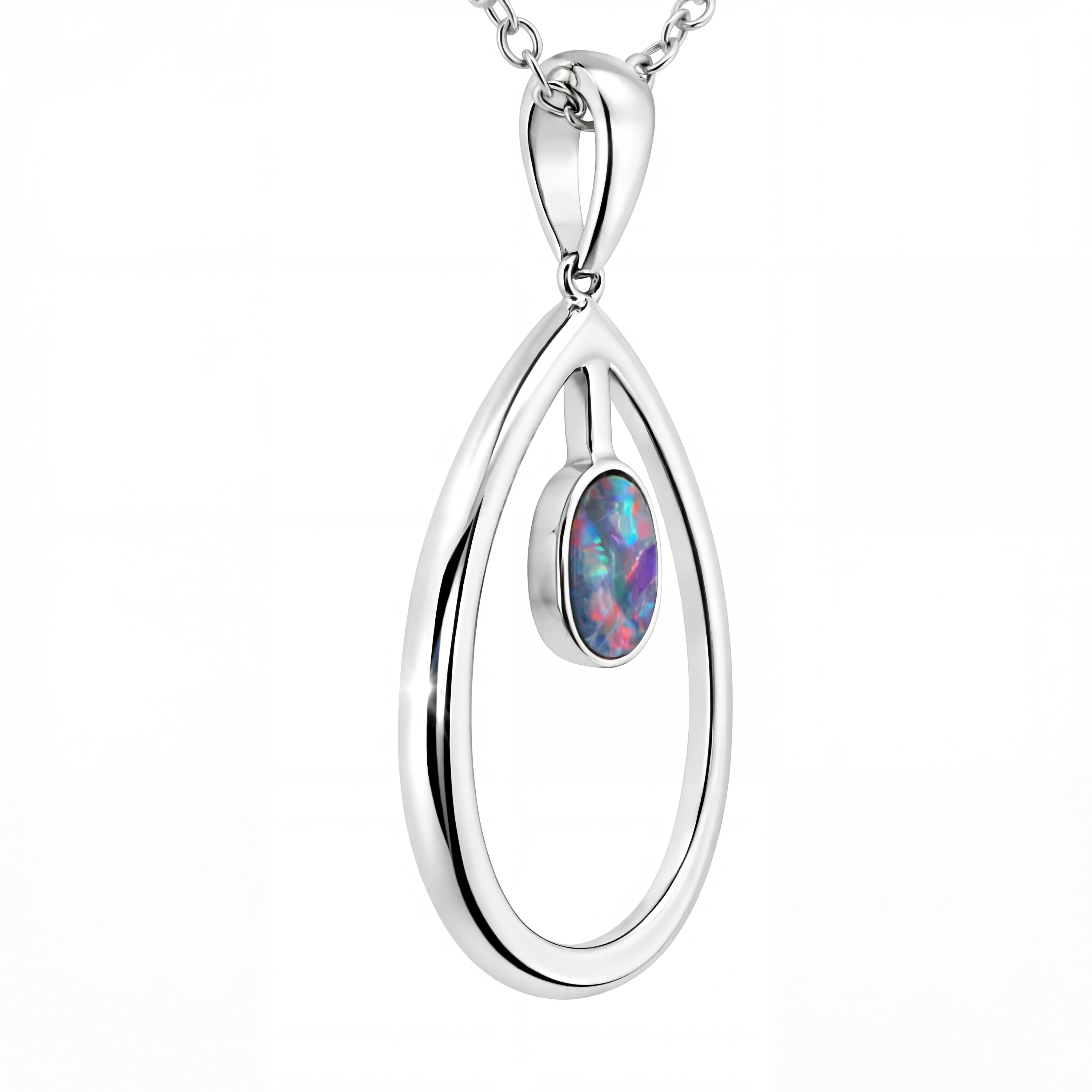 Doublet Opal Pendant in 925 Sterling Silver - Multicolour