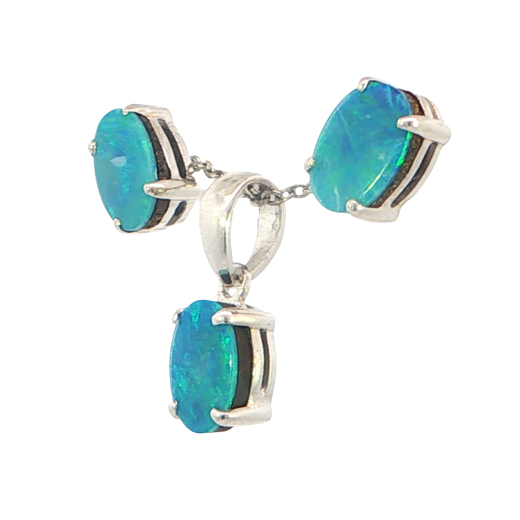 Doublet Opal Pendant and Earrings Combo Set in 925 Sterling Silver - Green and Blue