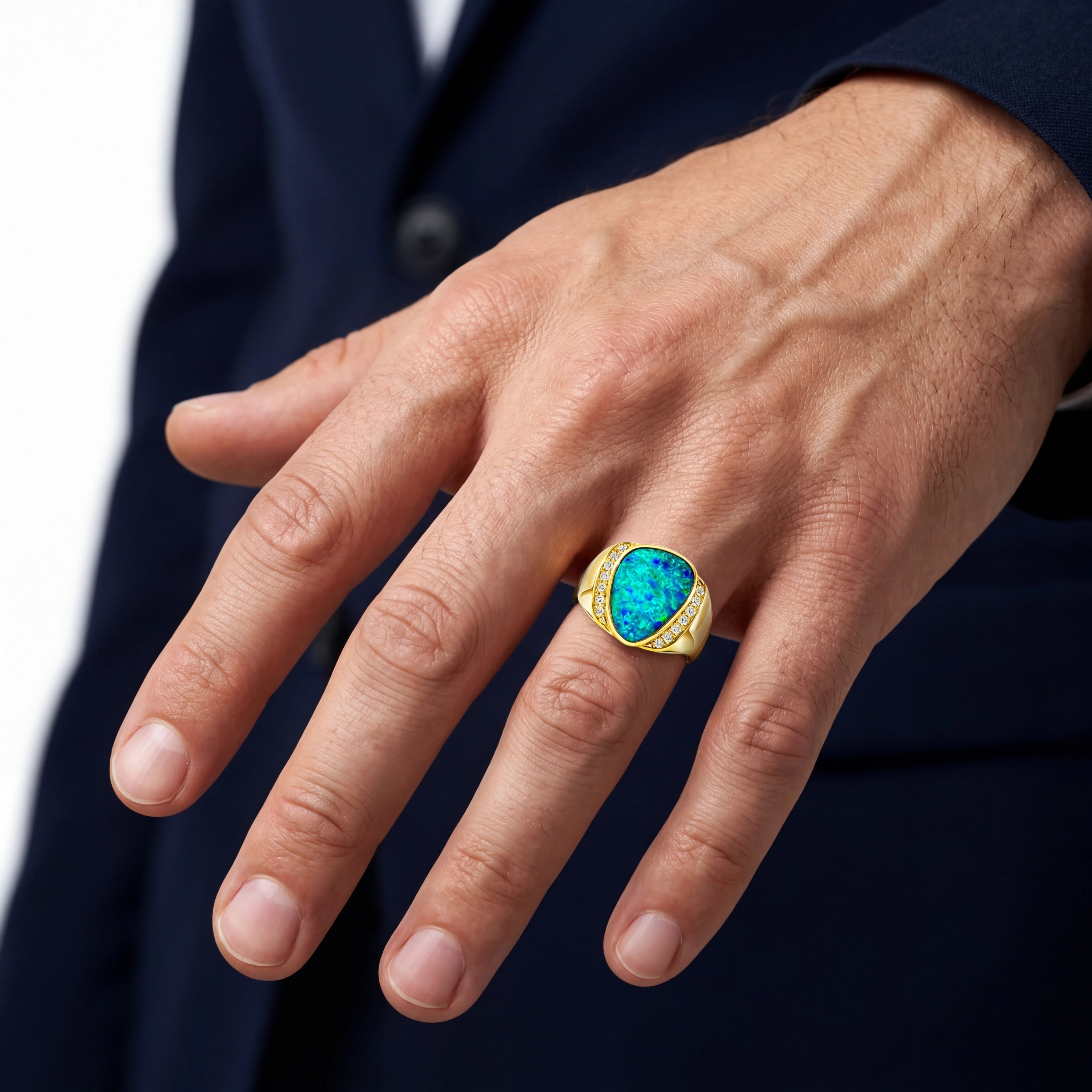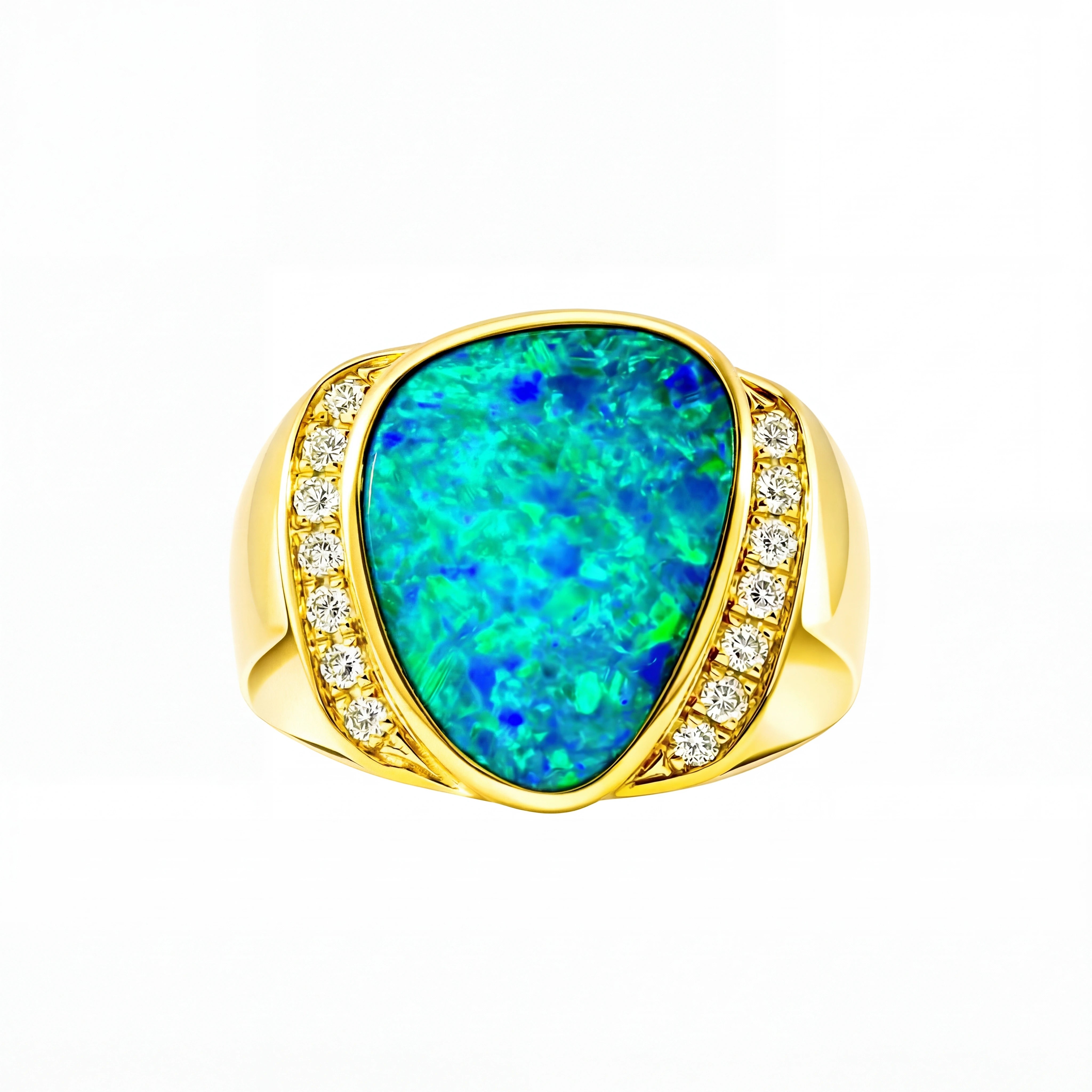 Doublet Opal Men's Ring in 14K Yellow Gold - Multicolour