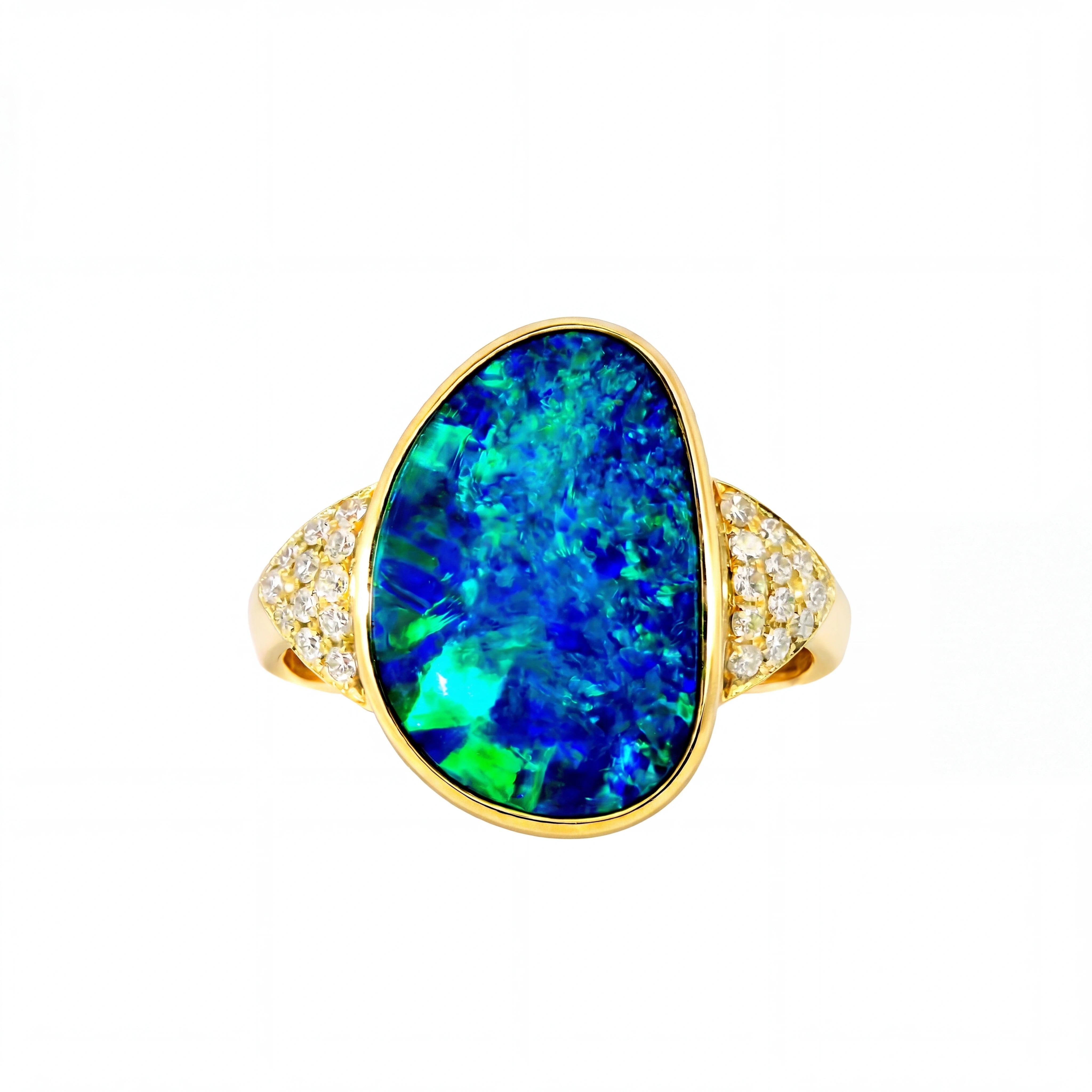 Doublet Opal Men's Ring in 14K Yellow Gold - Green-Blue