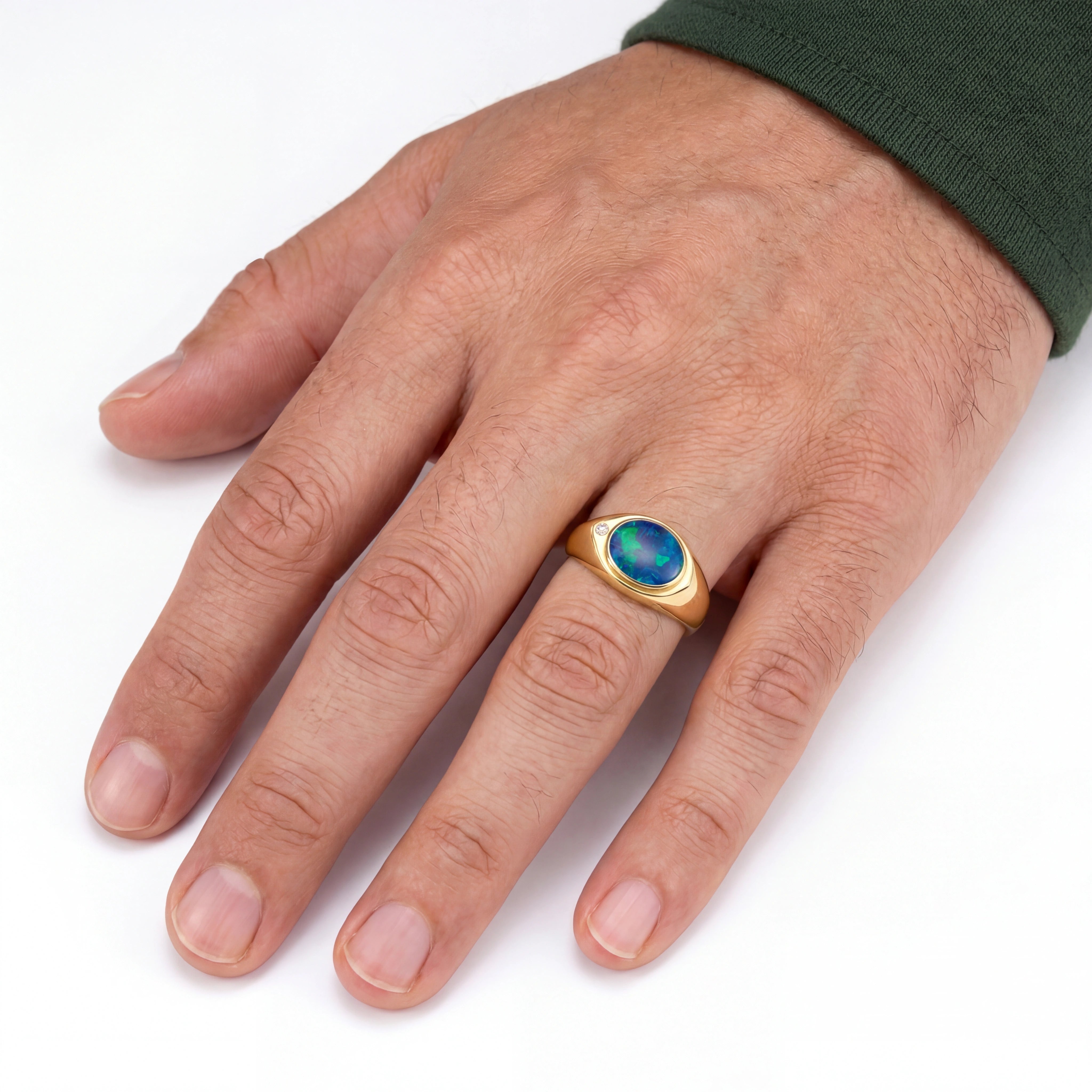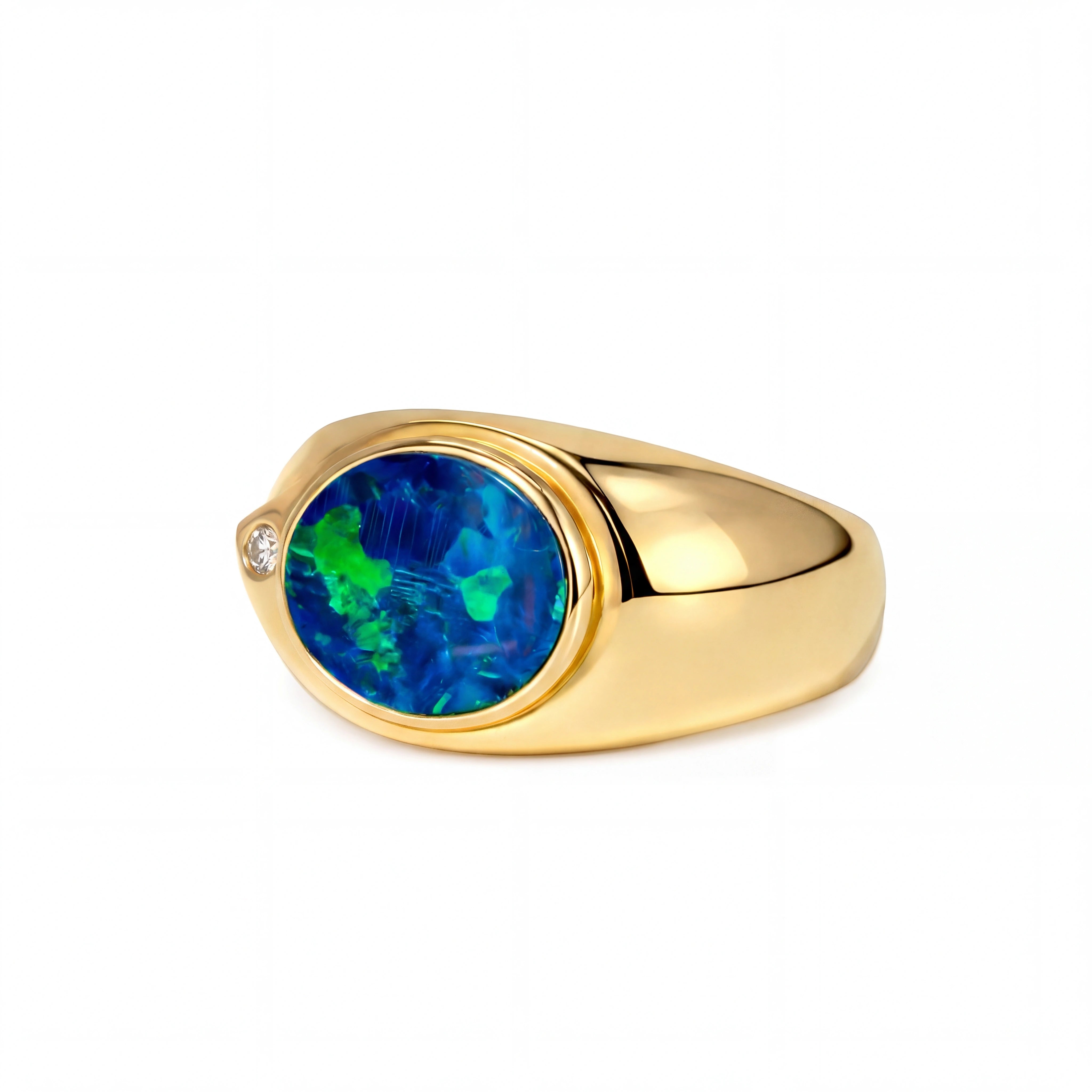 Doublet Opal Men's Ring in 14K Yellow Gold - Green-Blue