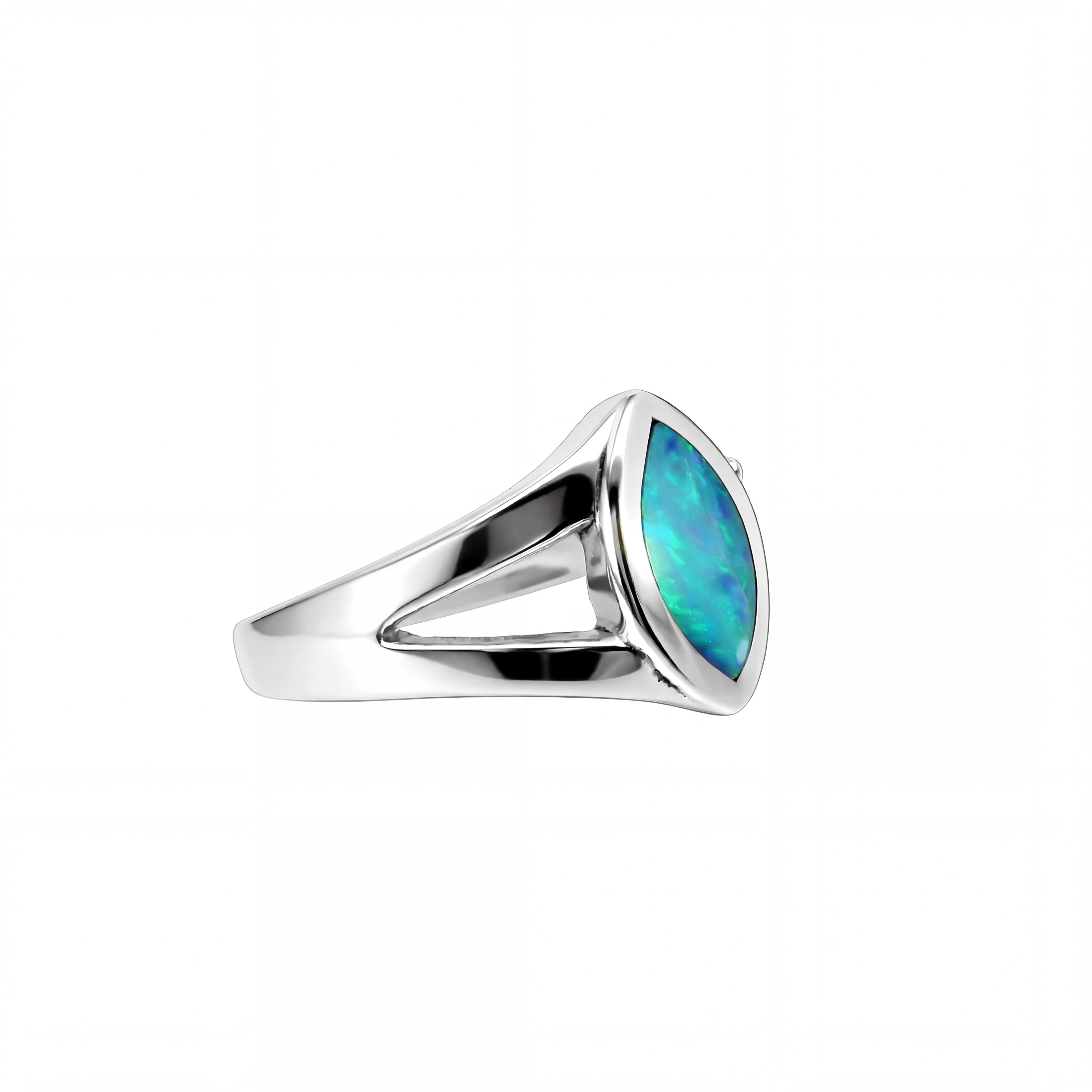 Doublet Opal Ring in 925 Sterling Silver - Green-Blue