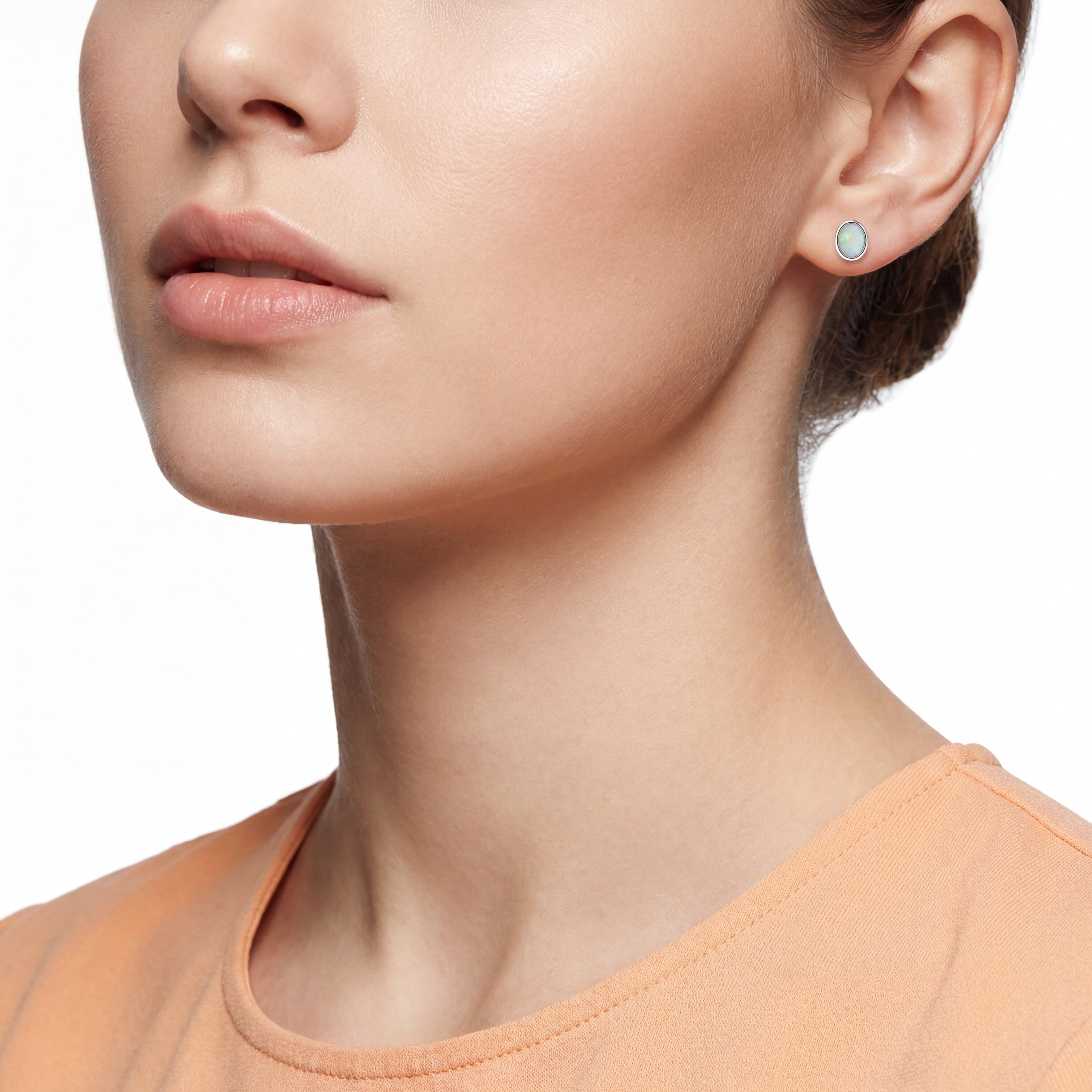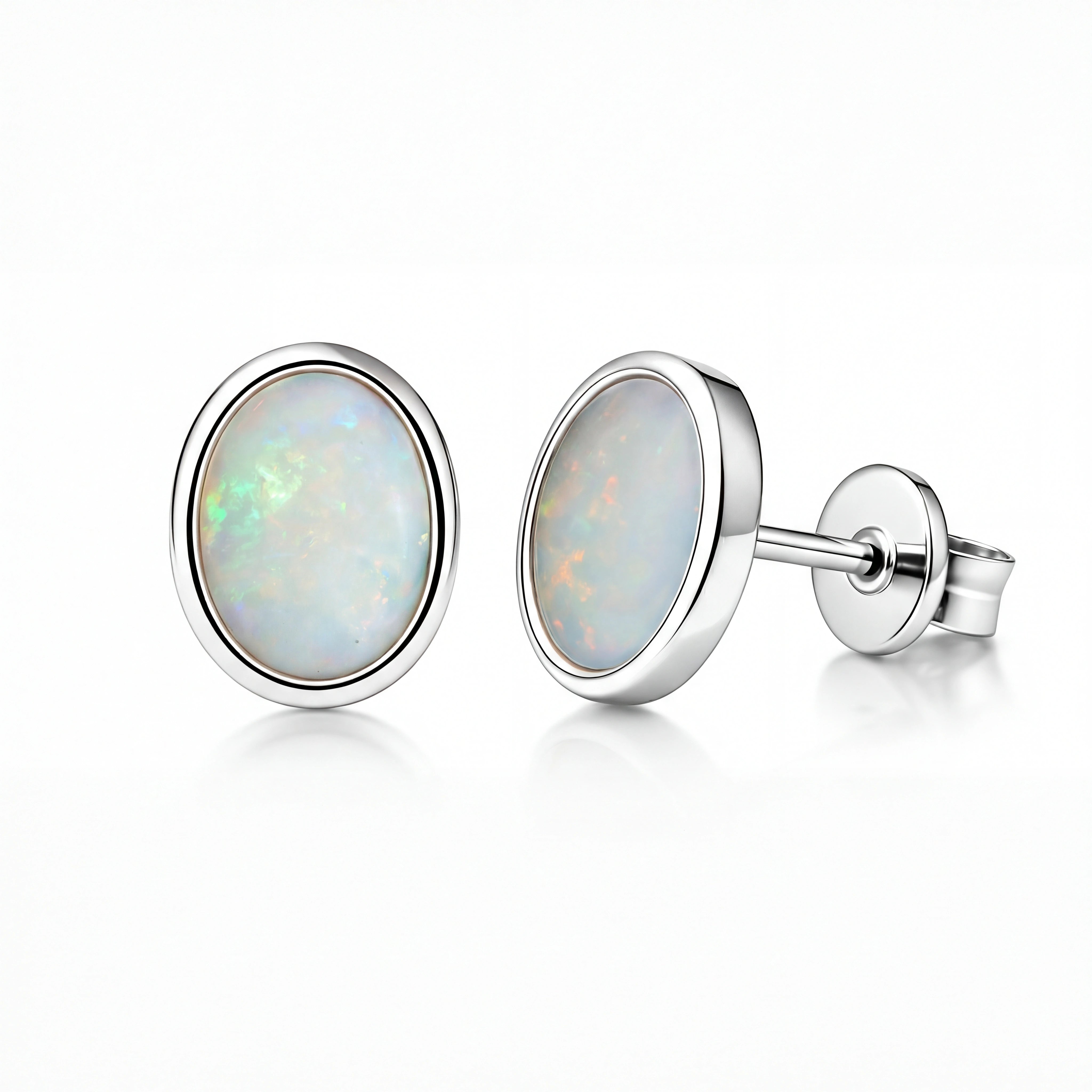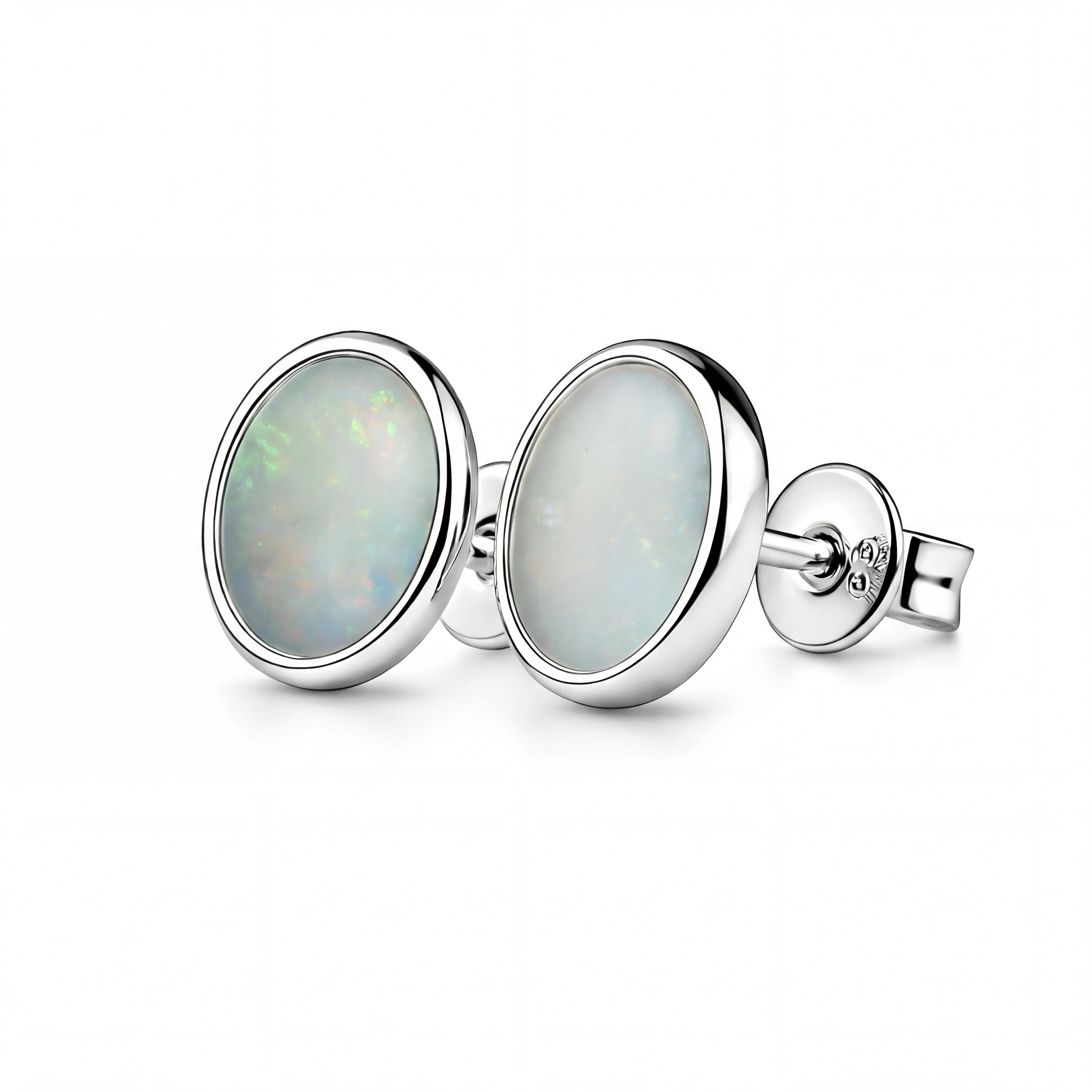 Light Opal Earrings in 925 Sterling Silver - Multicolour
