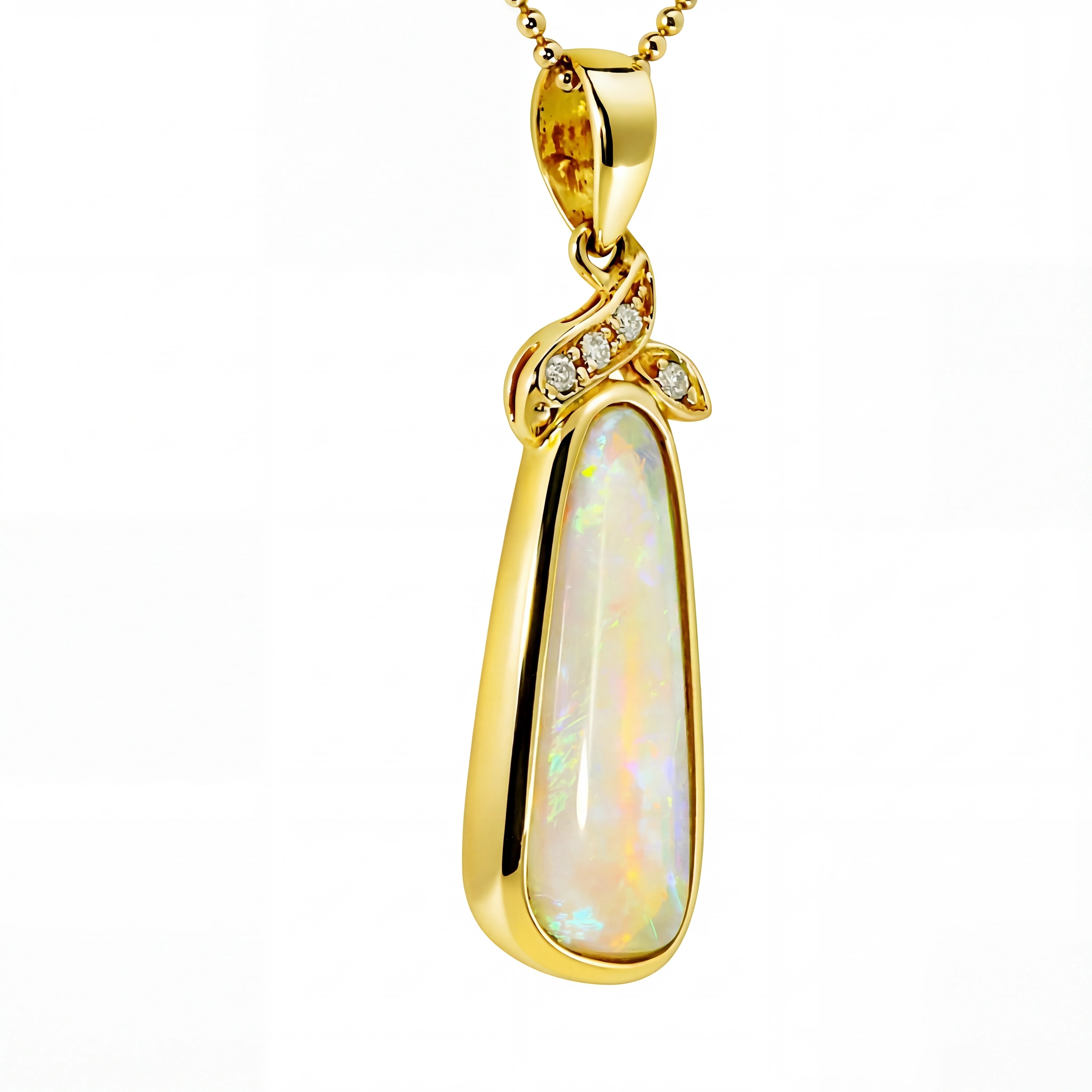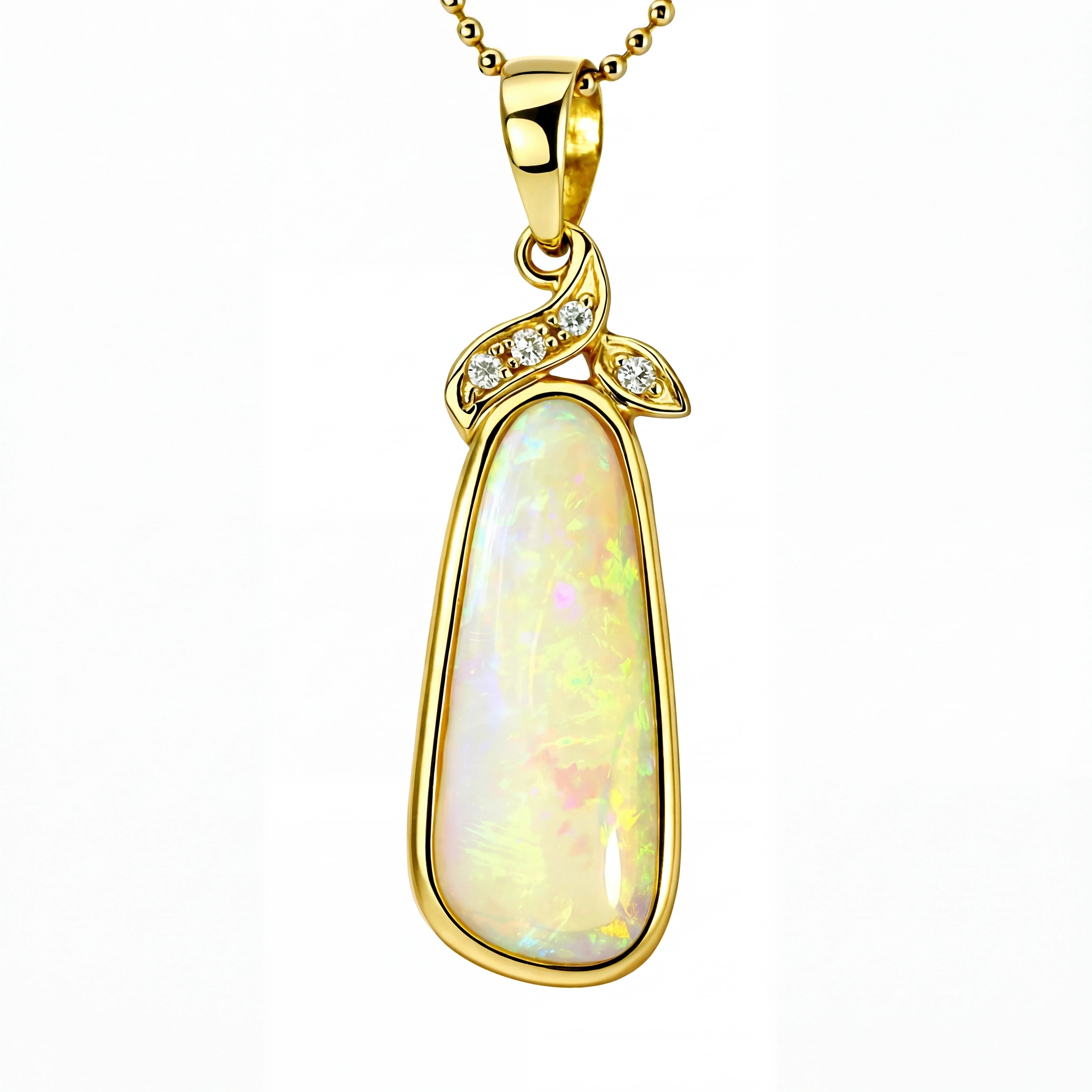 Light Opal Pendant in 14K Yellow Gold - Green-Blue