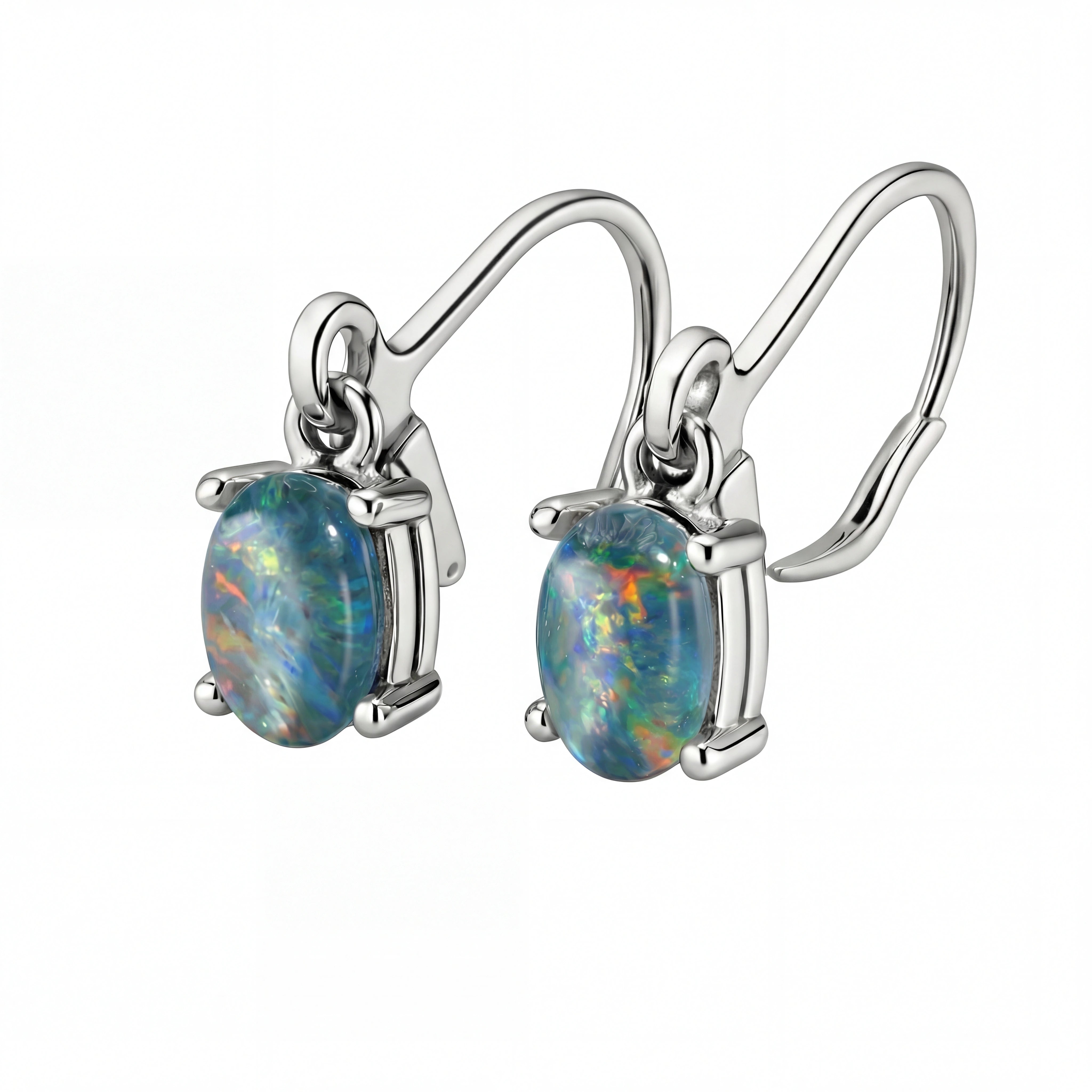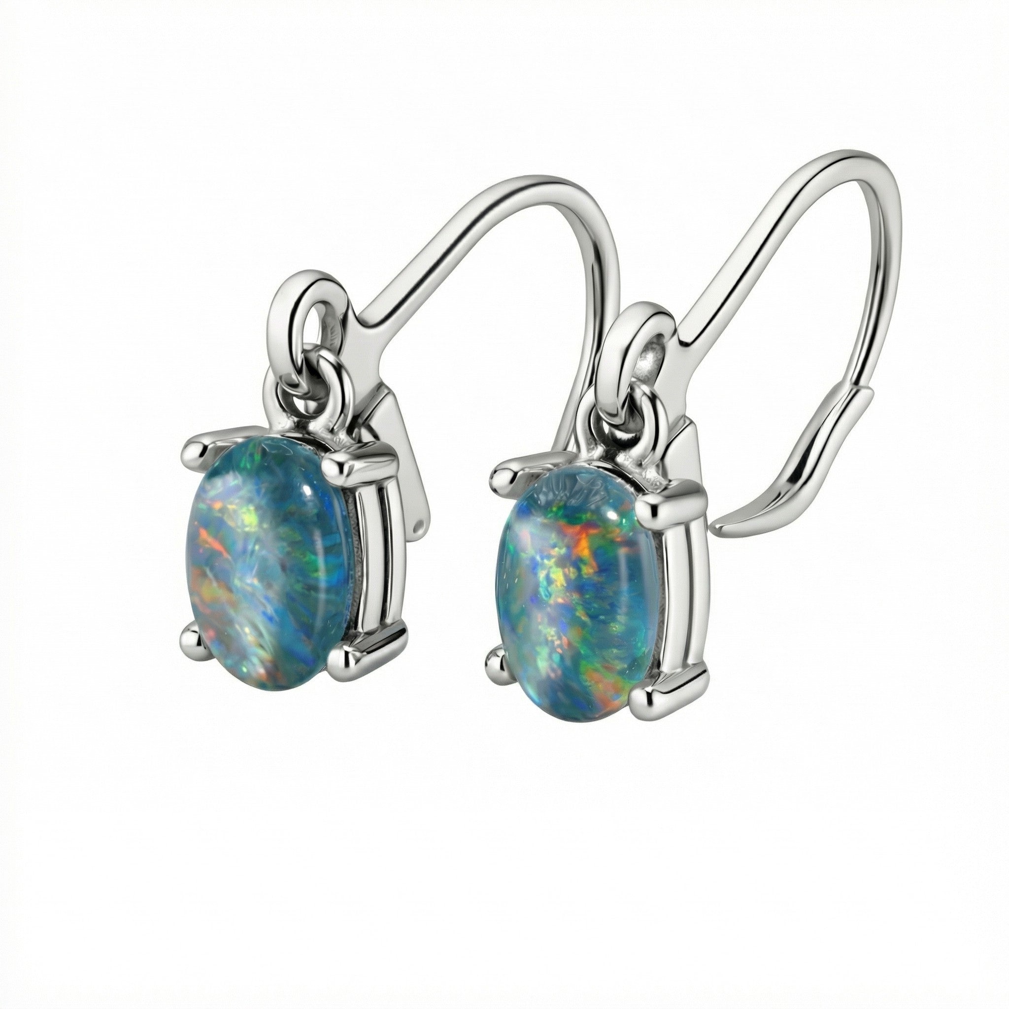 Triplet Opal Earrings in Stainless Steel - Green-Blue