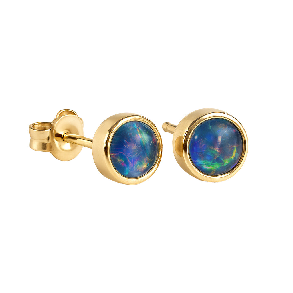 Home Triplet Opal Earrings in 9K Yellow Gold - Multicolour