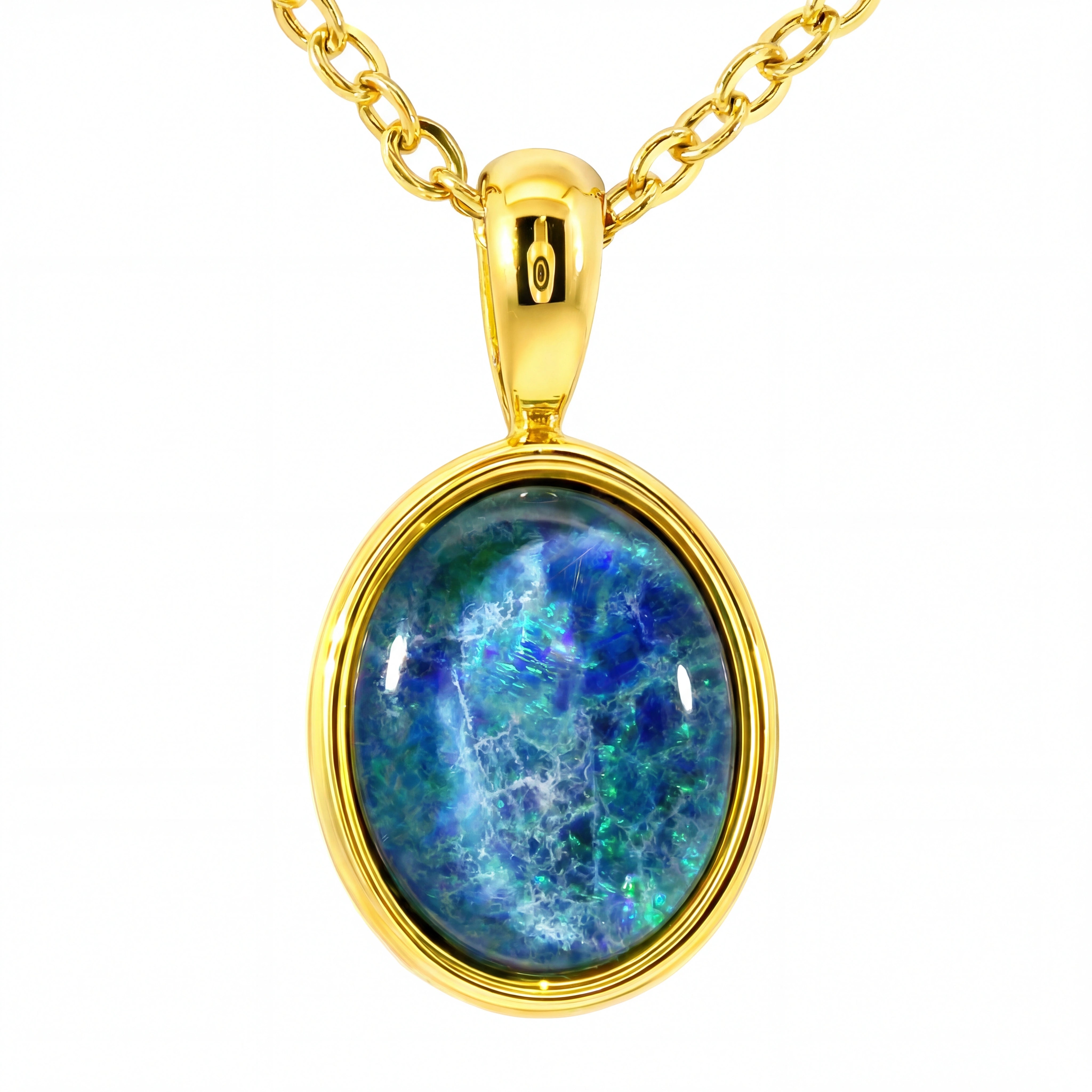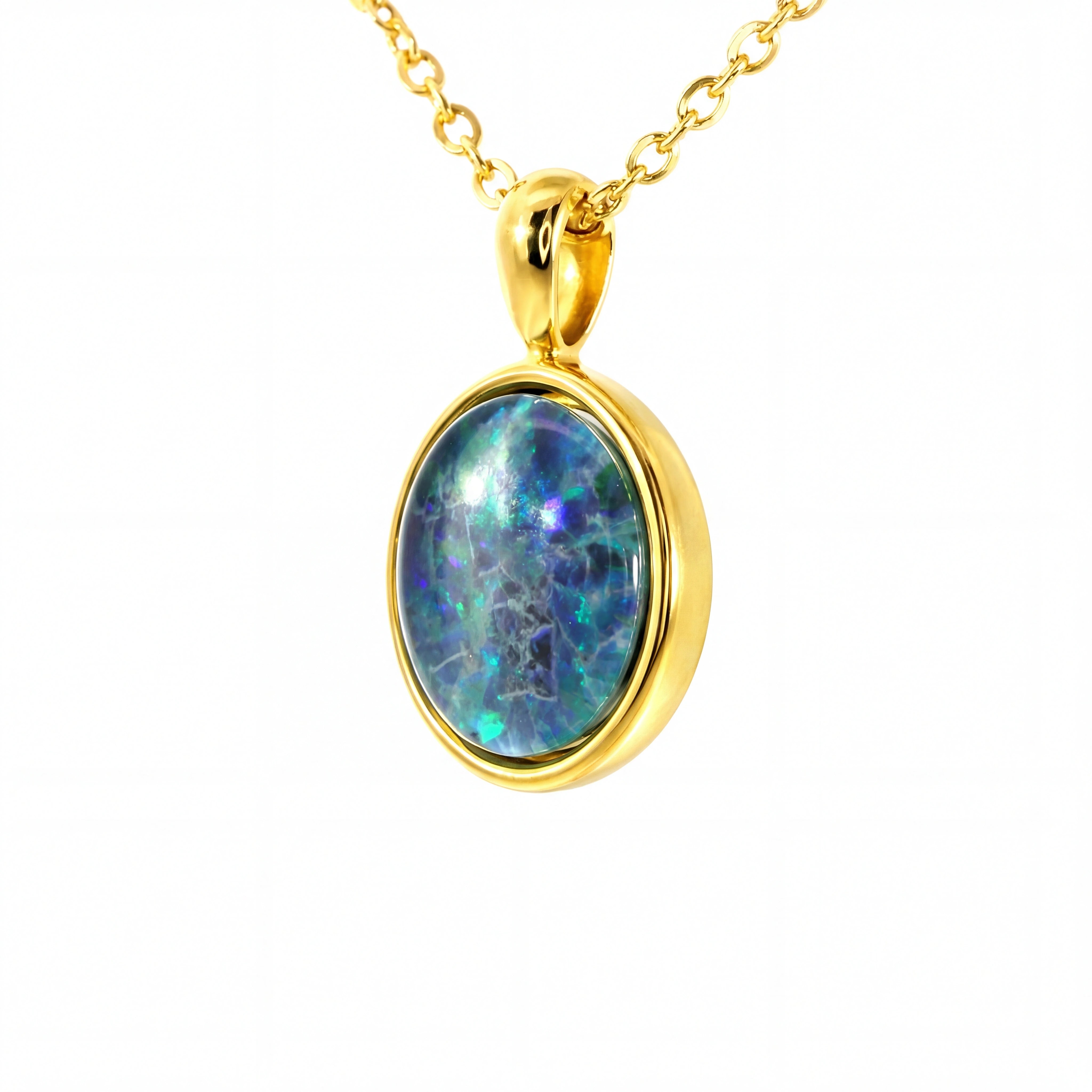 Triplet Opal Pendant set in Stainless Steel Gold Plated