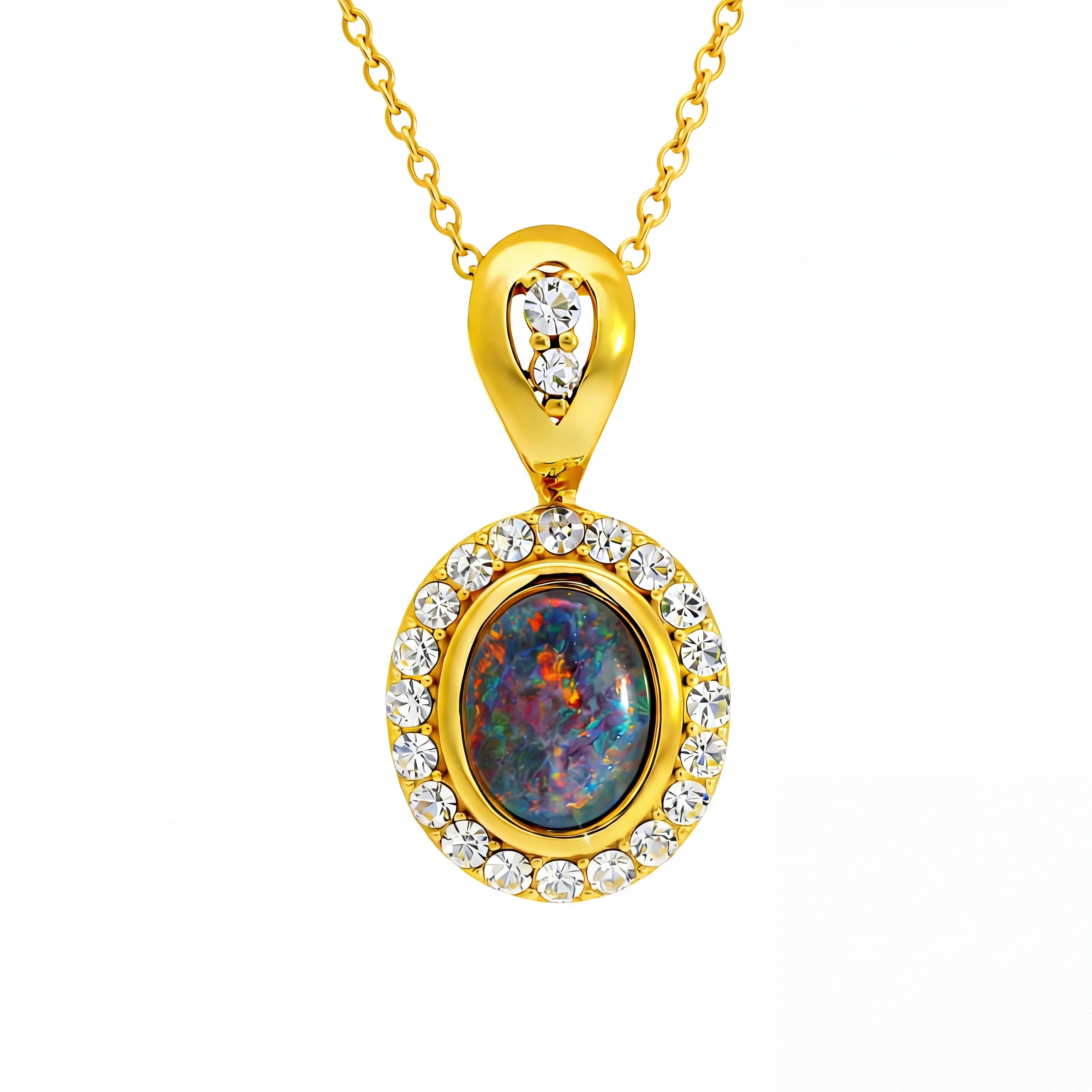 Home Triplet Opal Pendant set in Gold Plated Stainless Steel - Multicolour