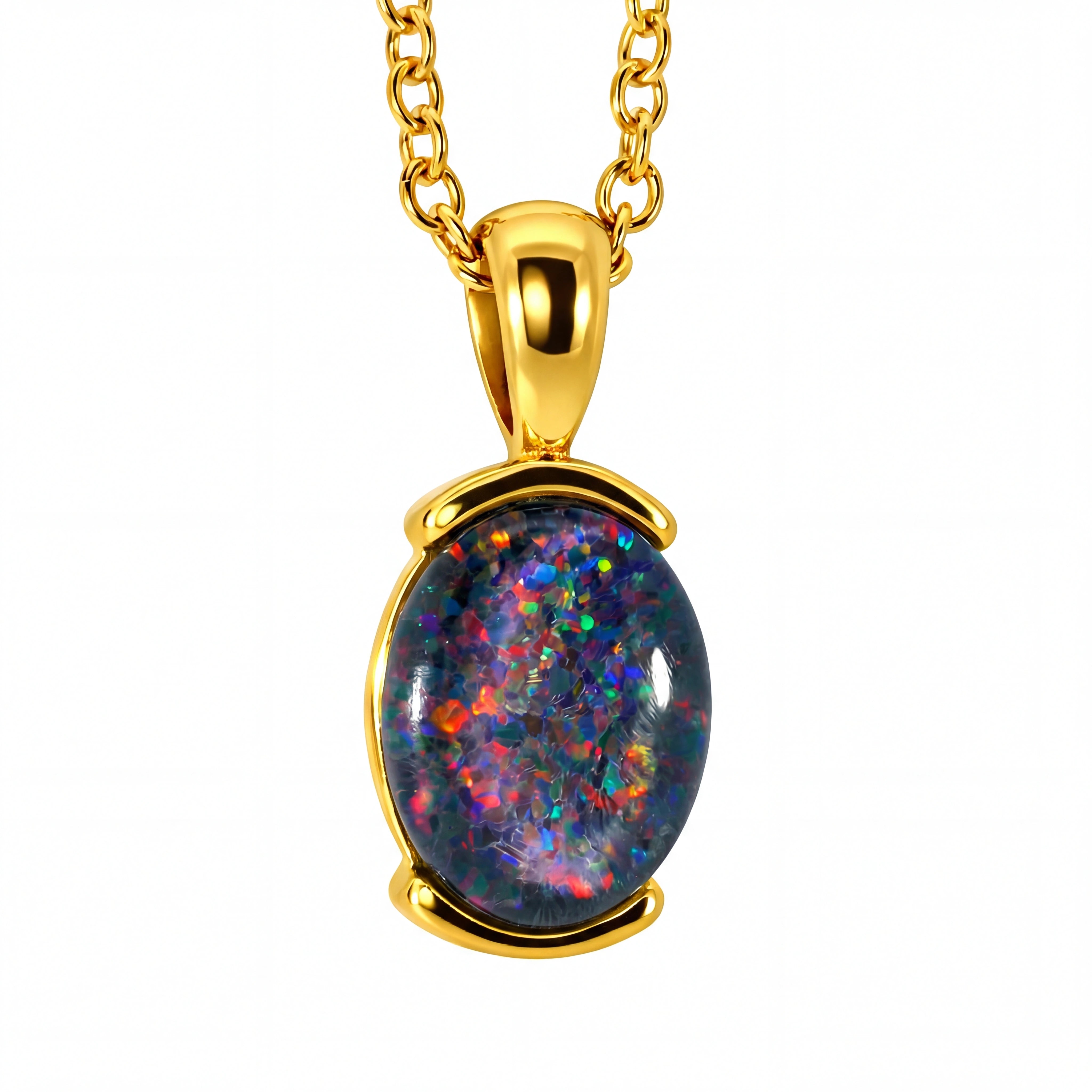 Triplet Opal Pendant set in Stainless Steel Gold Plated