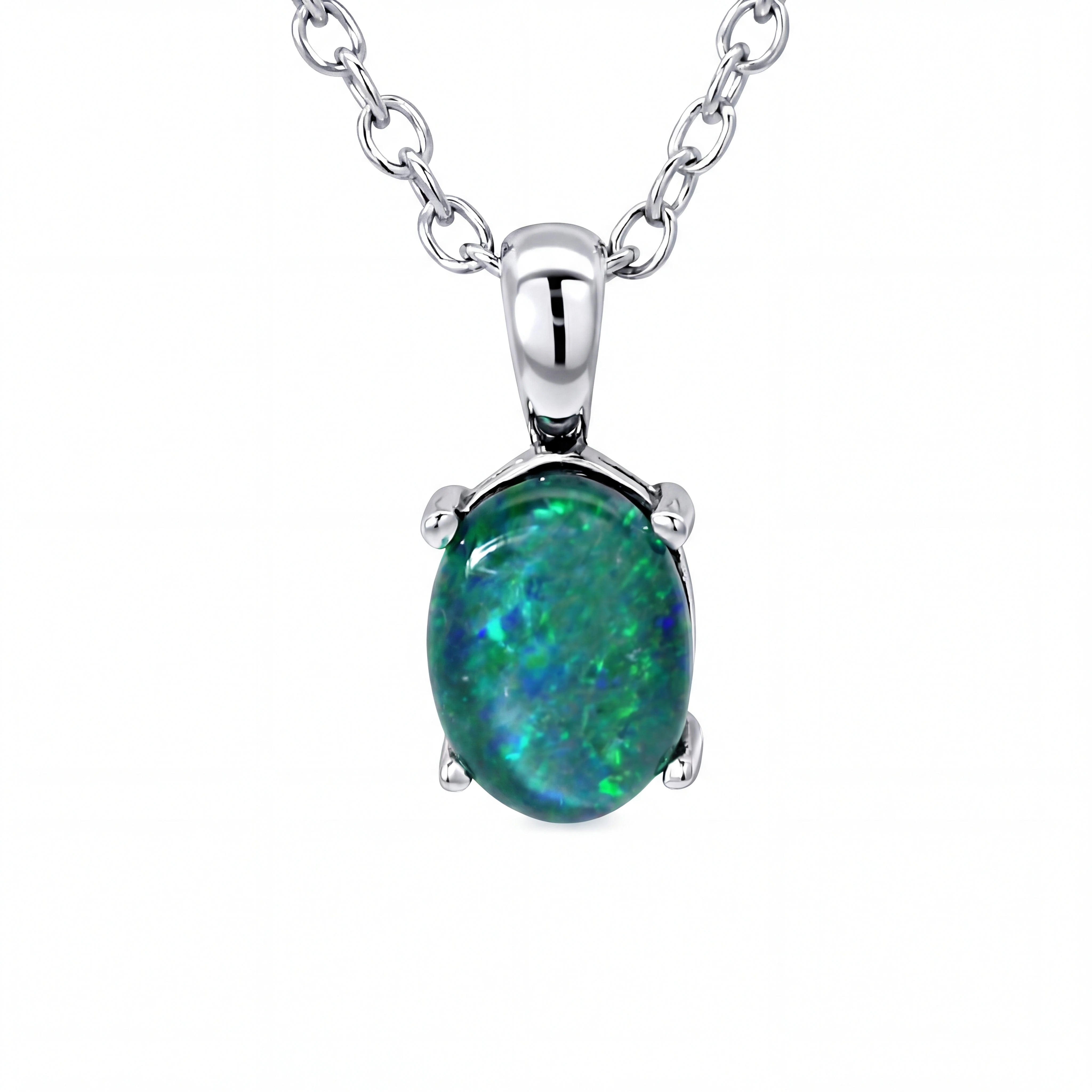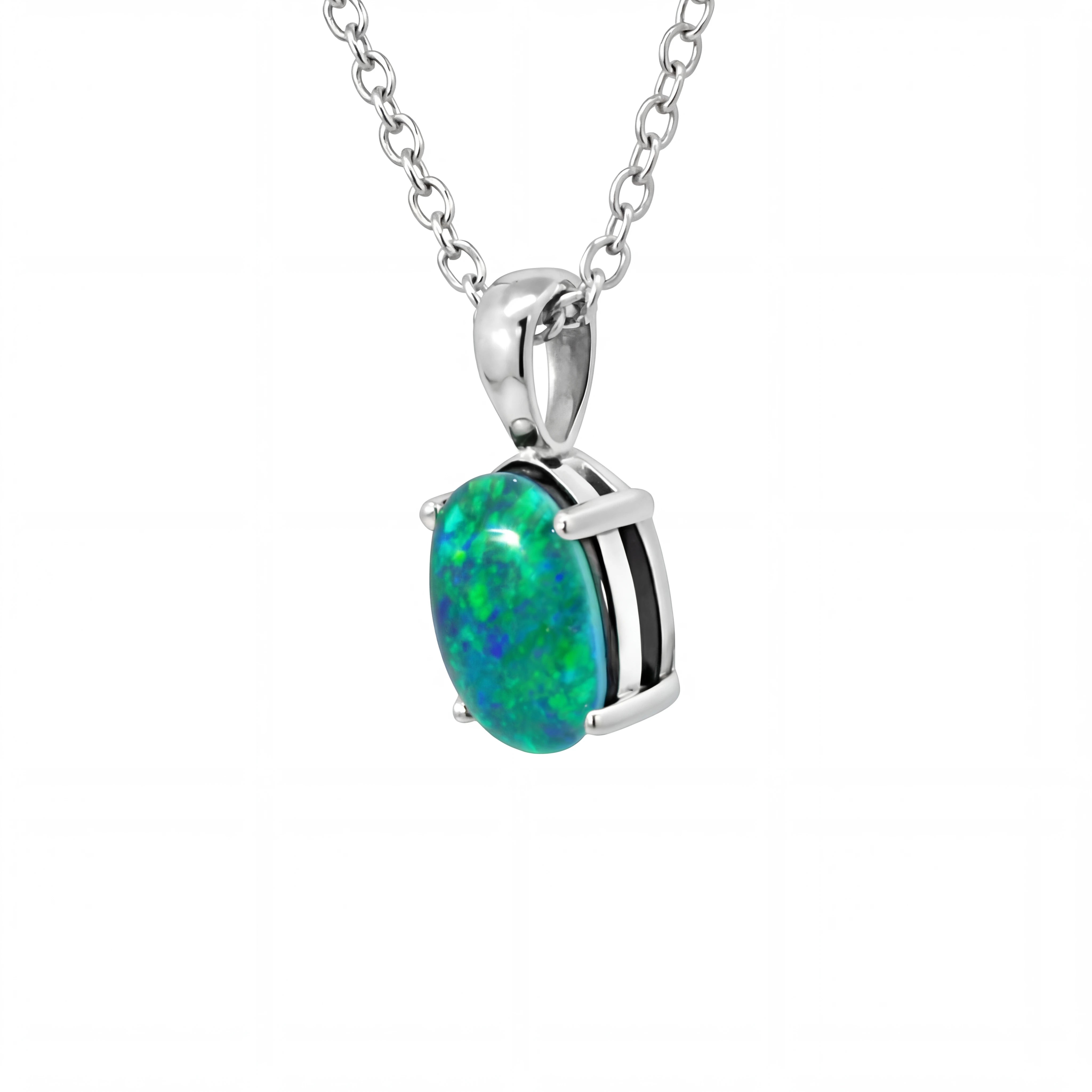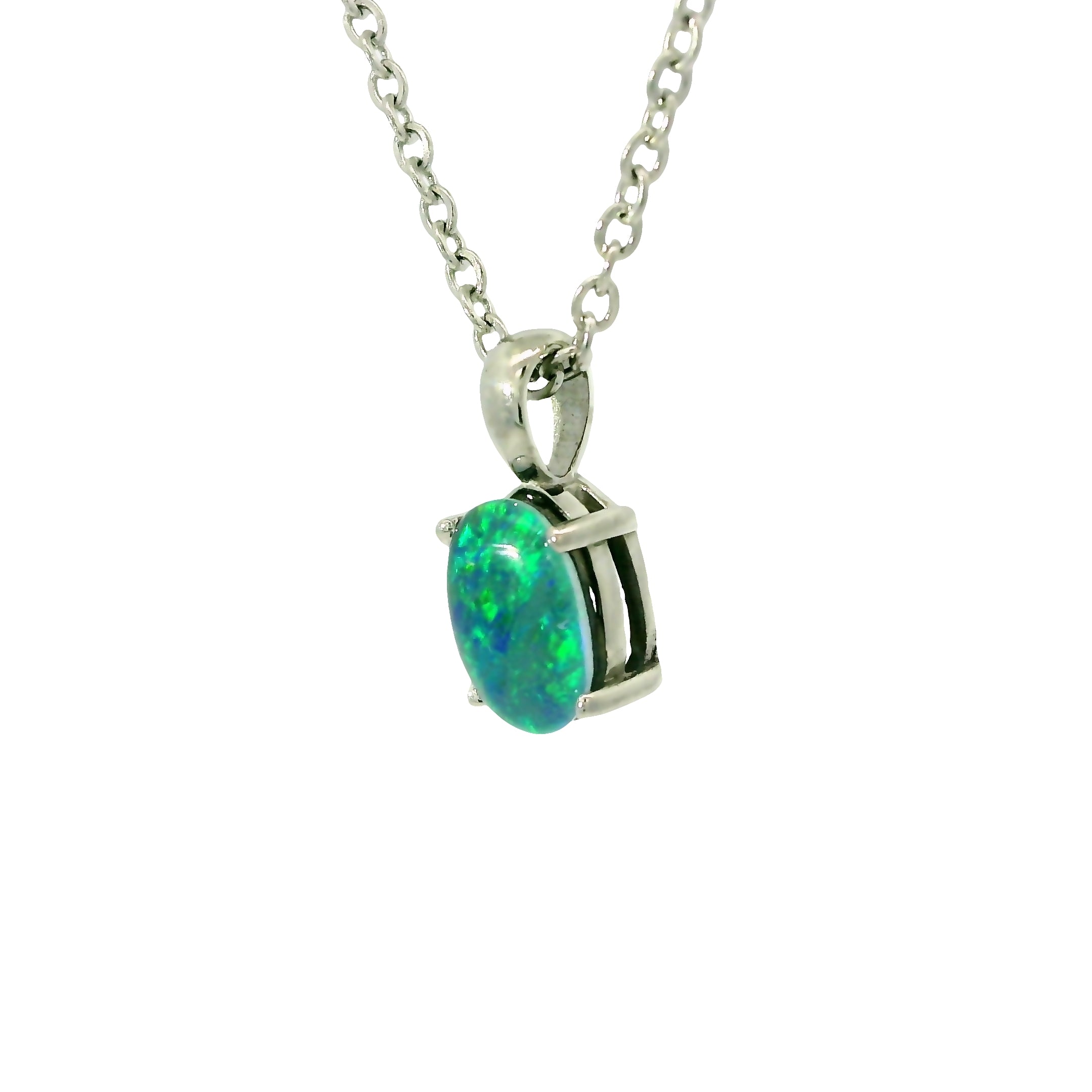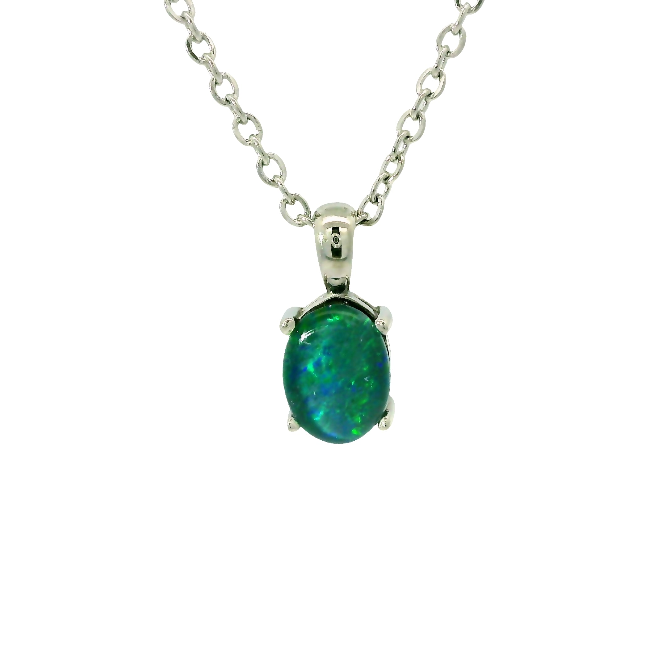 Triplet Opal Pendant in Stainless Steel - Green and Blue