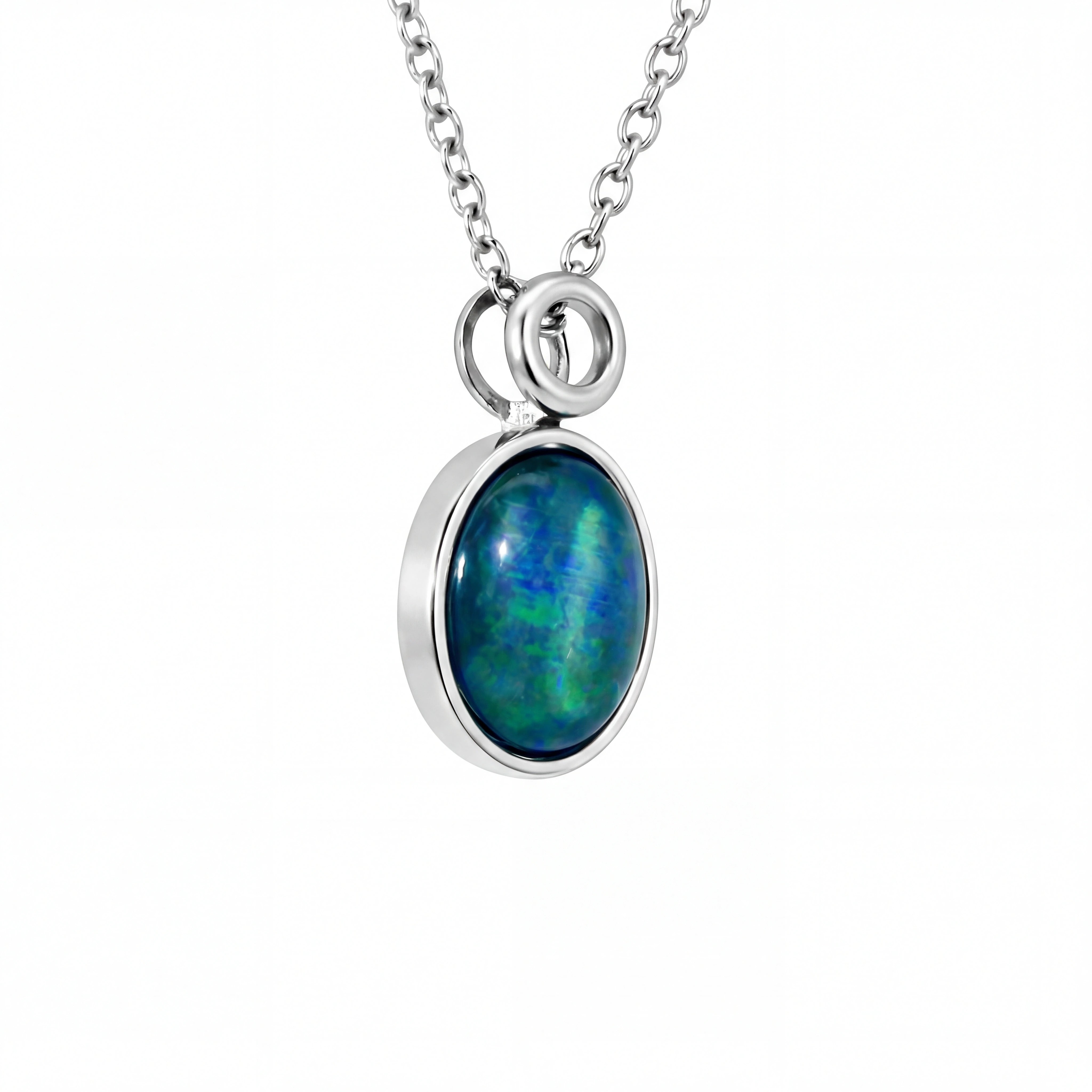 Triplet Opal Pendant in Stainless Steel - Green and Blue
