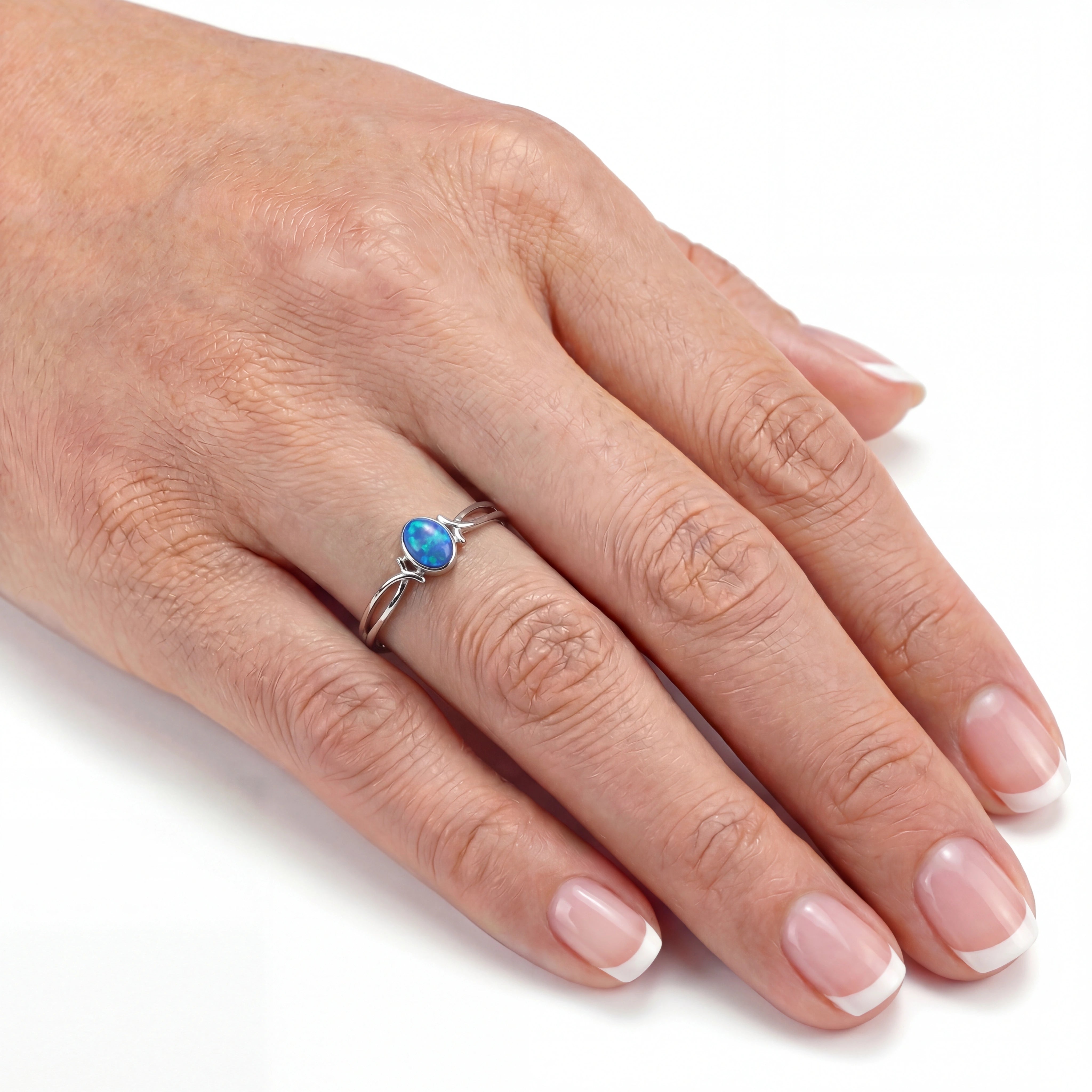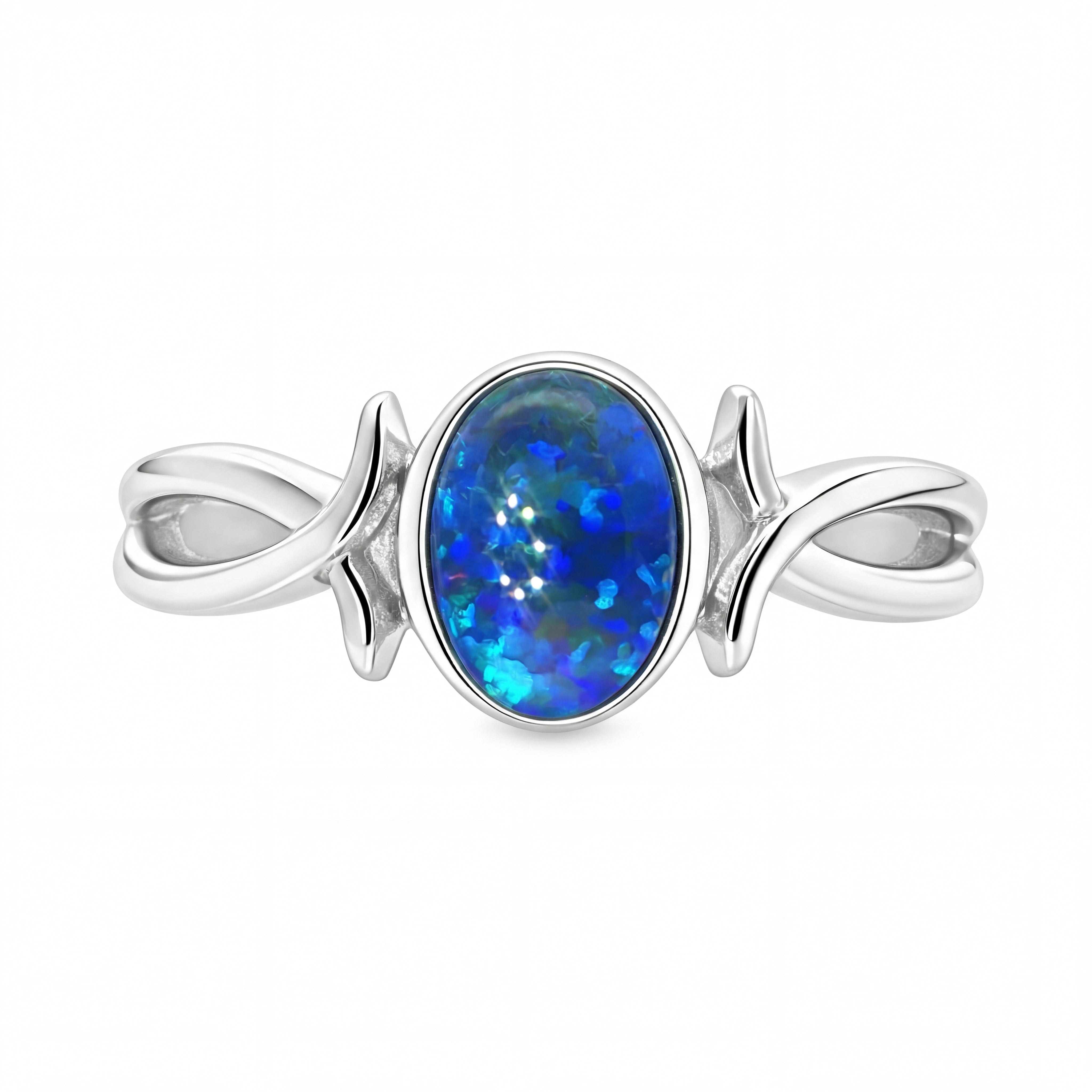 Triplet Opal Ring in Stainless Steel - Green-Blue