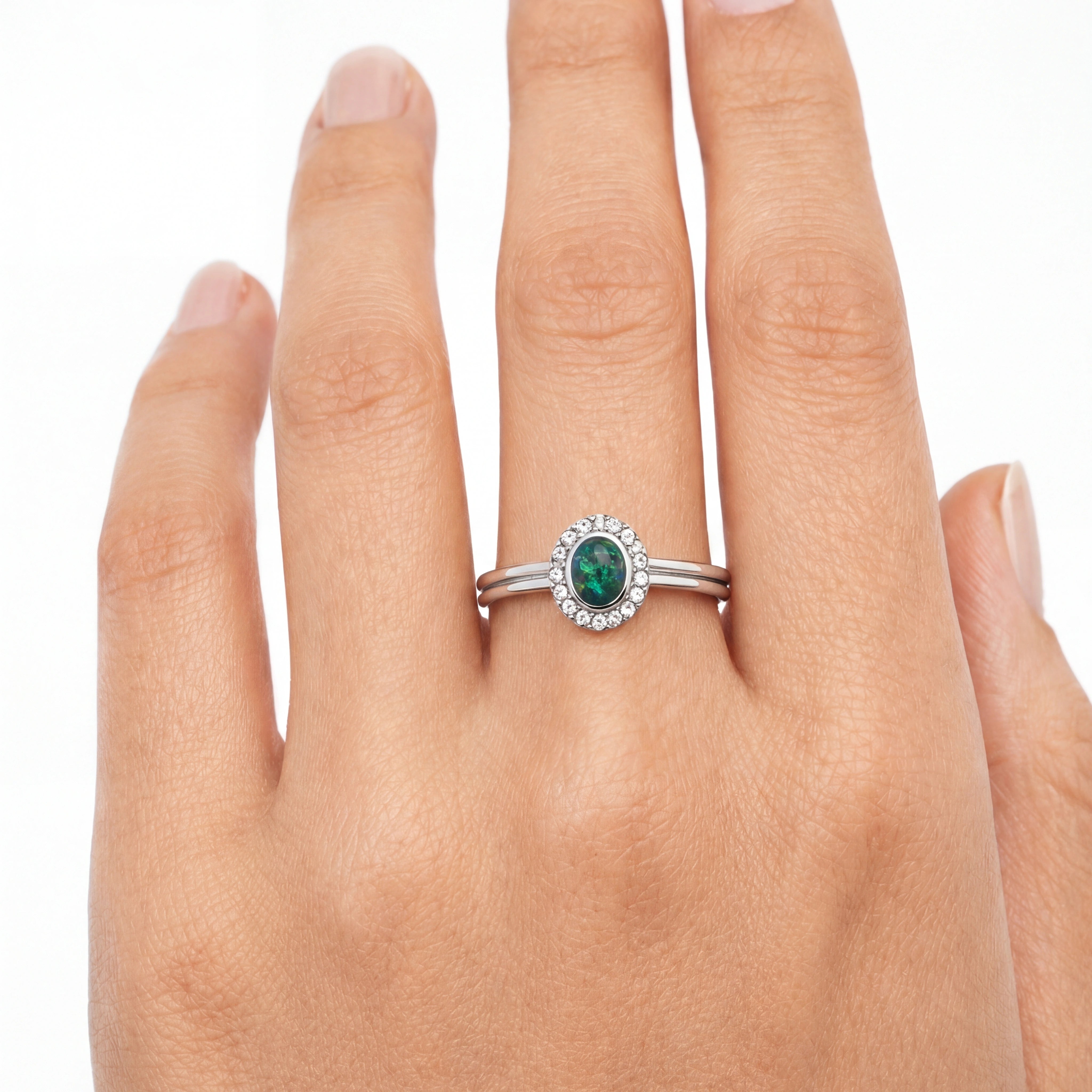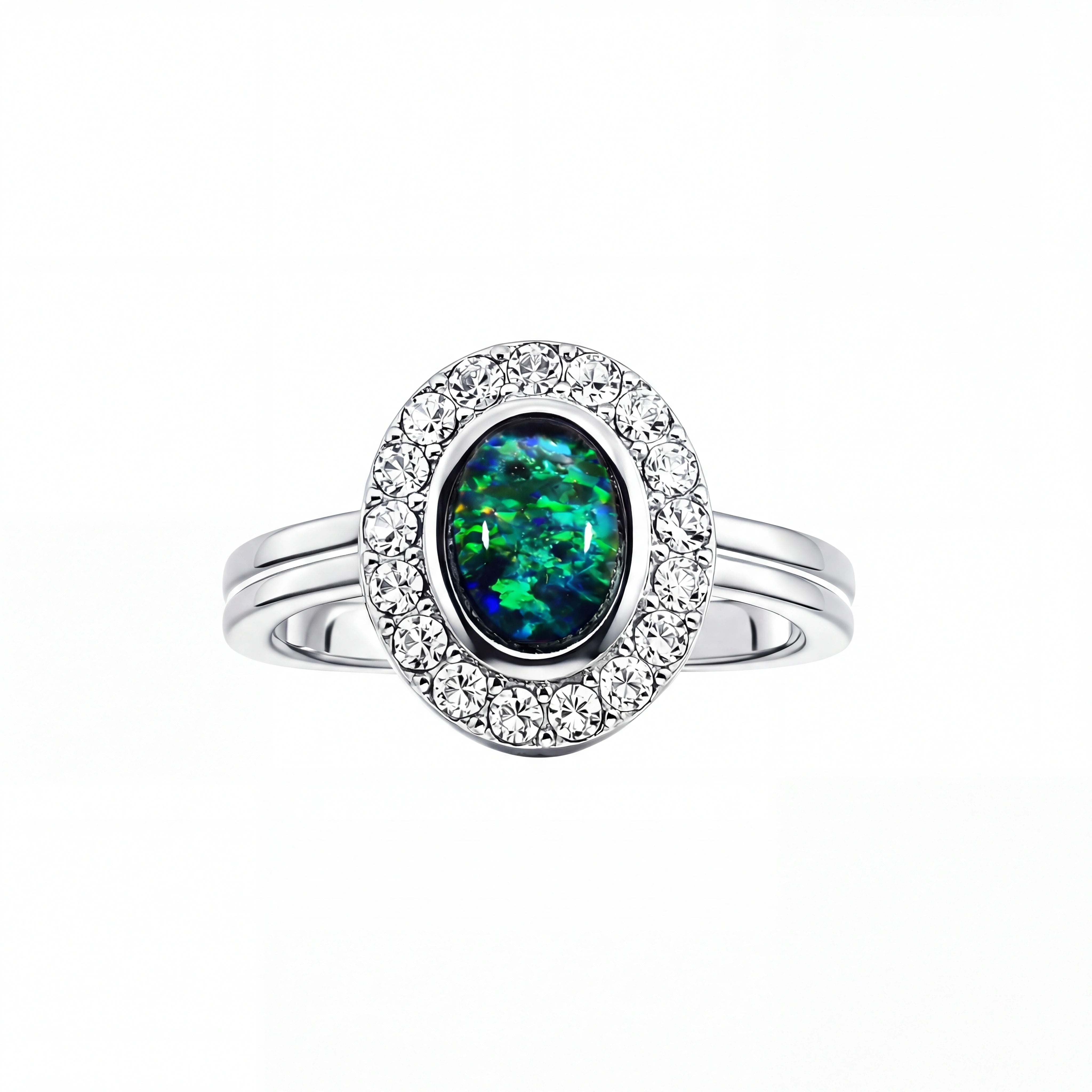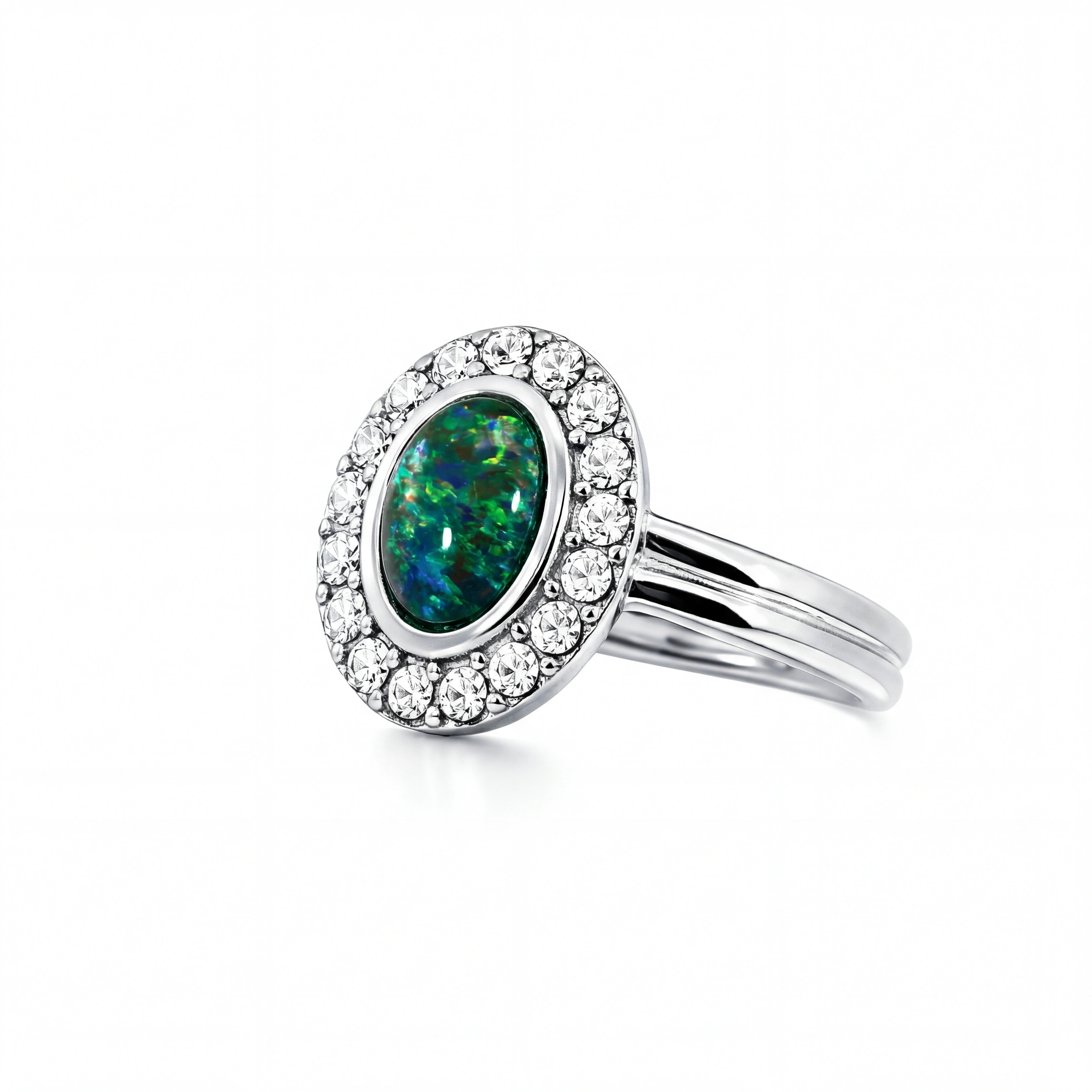 Home Triplet Opal Ring in Stainless Steel - Green-Blue
