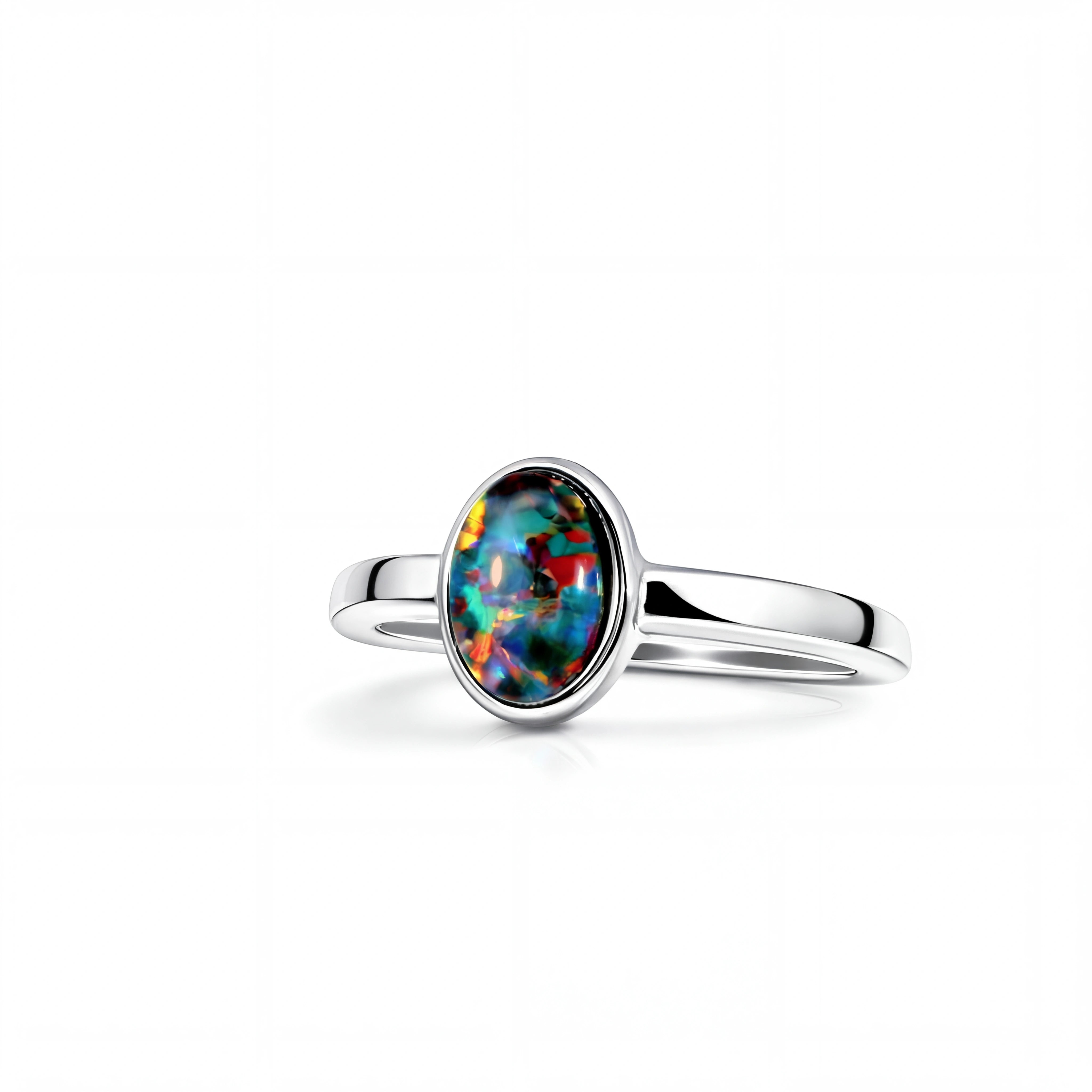 Triplet Opal Ring in Stainless Steel - Multicolour