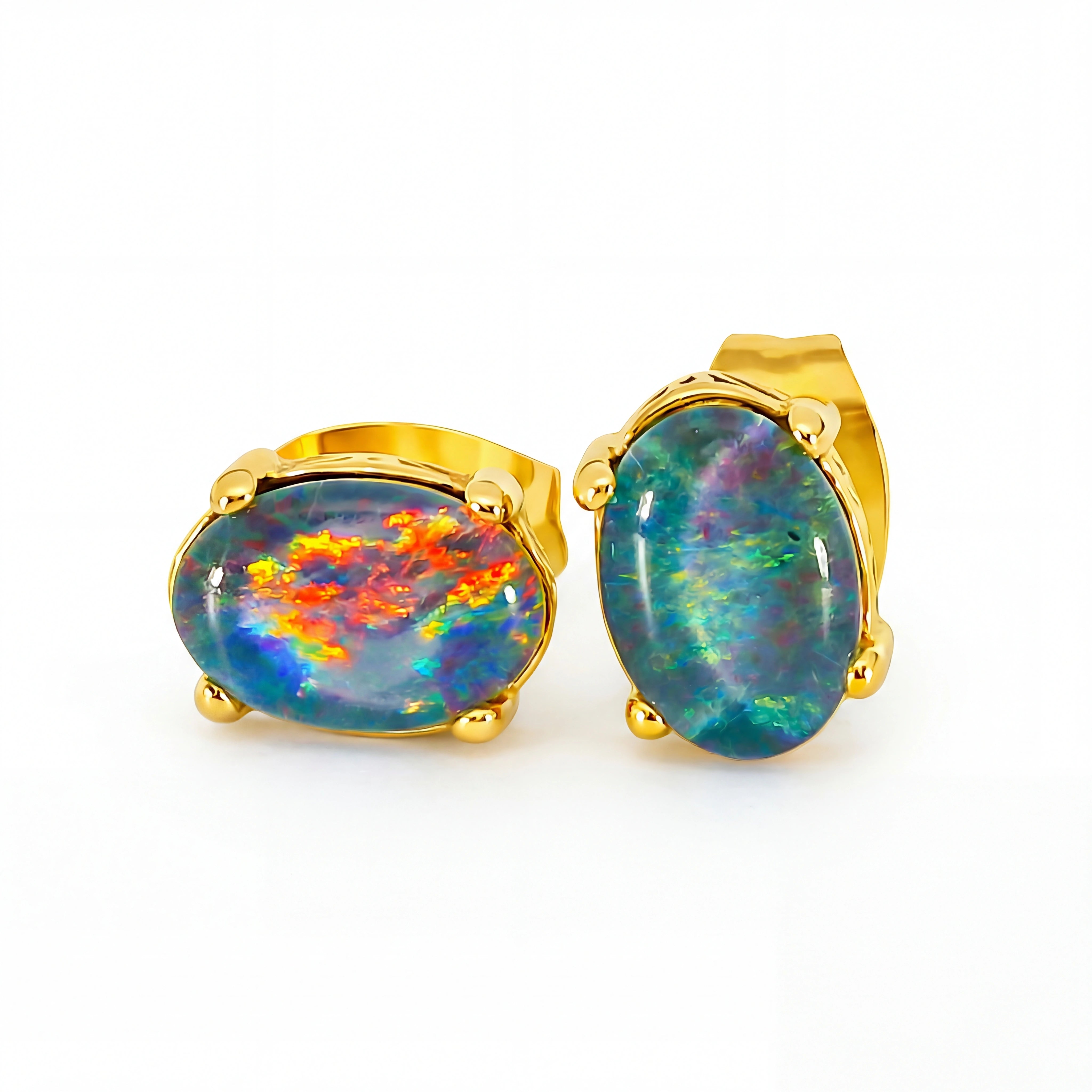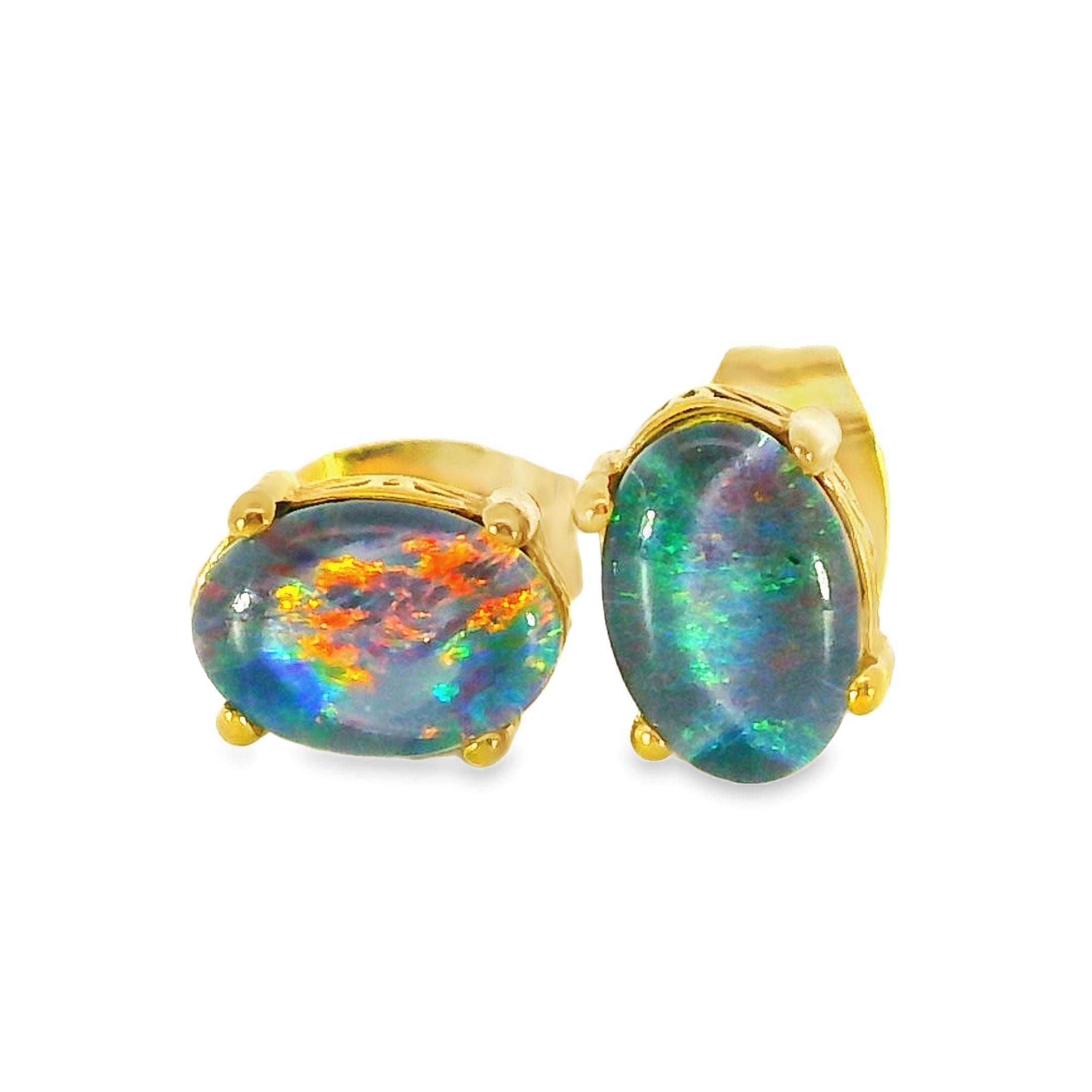 Triplet Opal Earring set in Gold Plated Stainless Steel - Multicolour